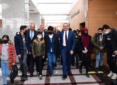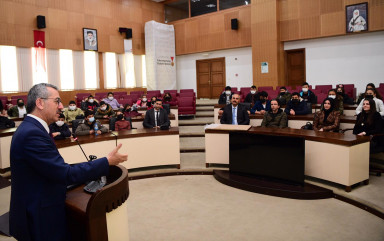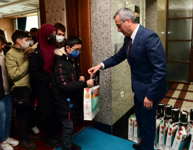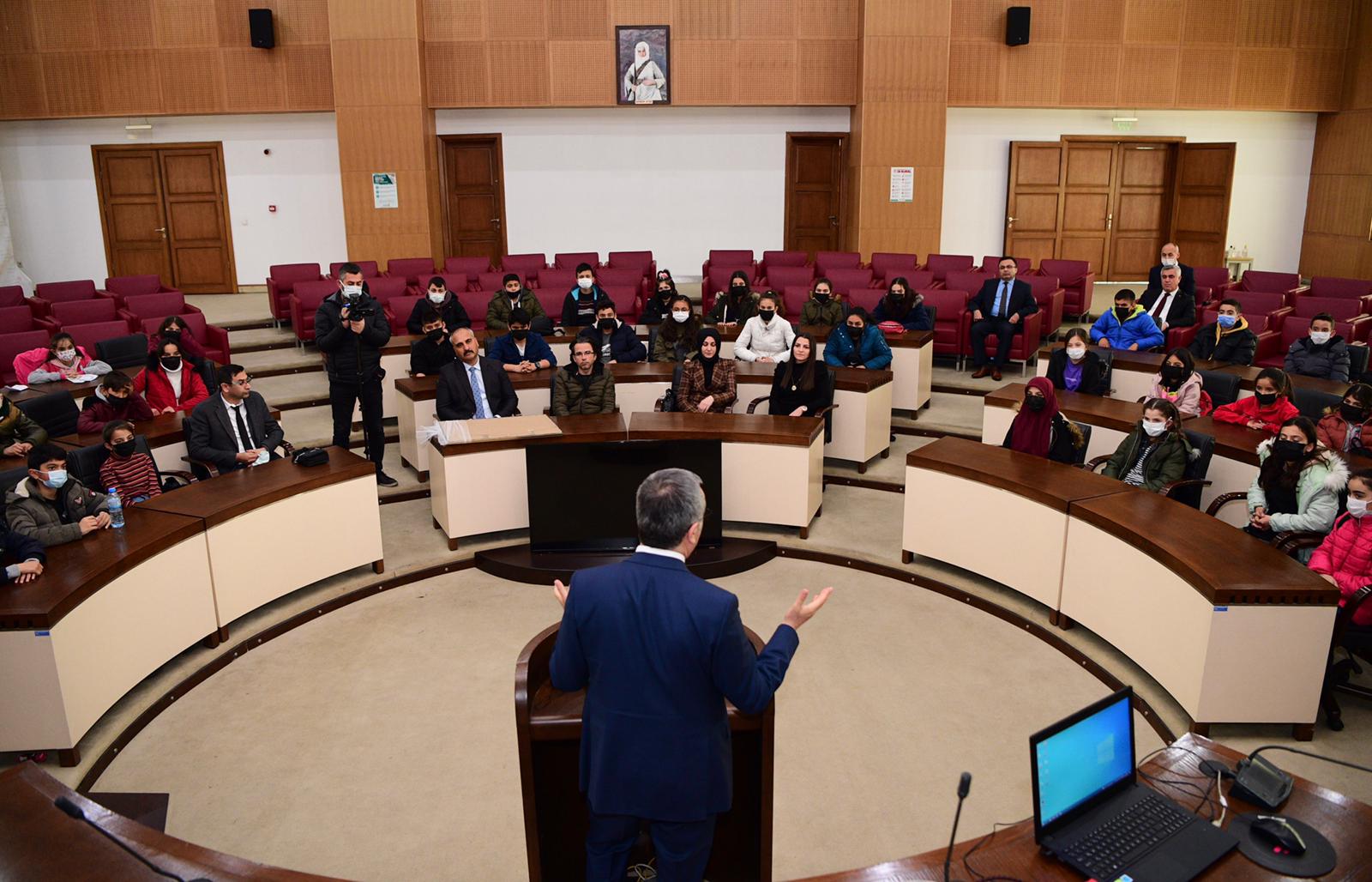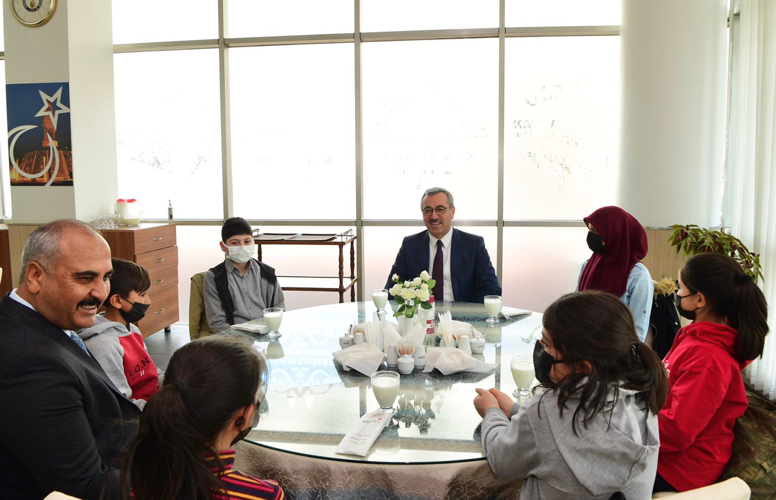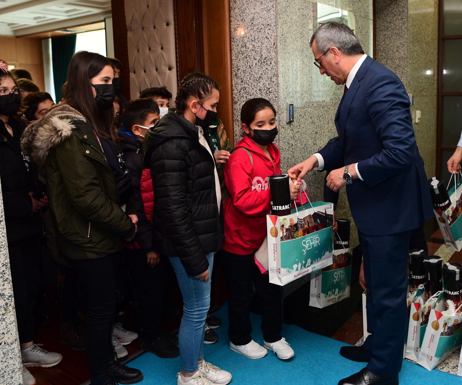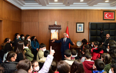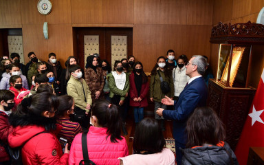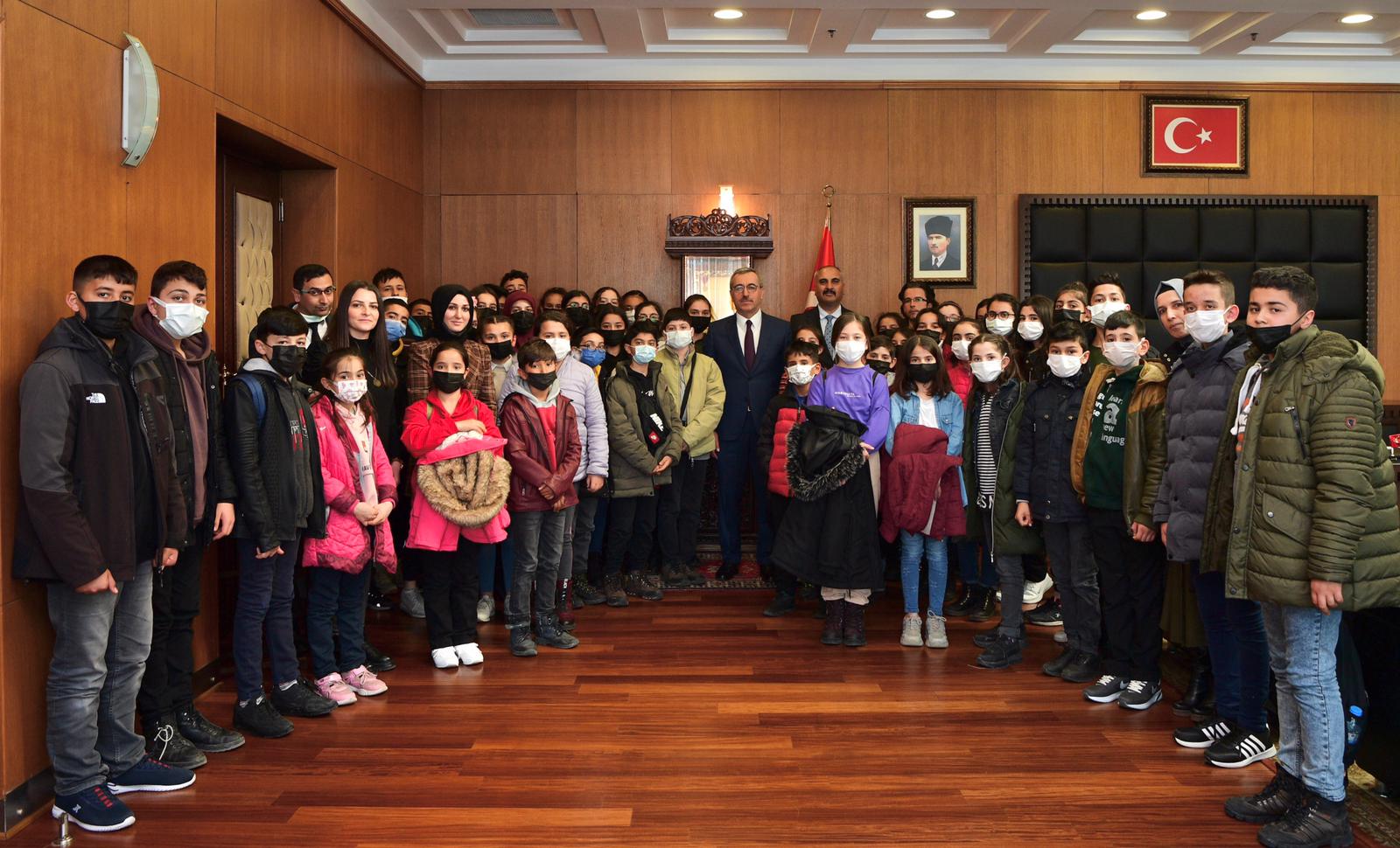 Göksun Turna Bucağı Ortaokulu öğrencilerini makamında ağırlayan Başkan Güngör, “Göksun’dan gelen değerli öğretmen ve öğrencilerimizi misafir ettik. Öğrencilerimizin kadim tarihimize olan ilgisine şahit olmak bizleri son derece mutlu etti. Gençlerimizle gurur duyuyorum” dedi.