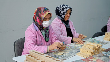 Büyükşehir Belediyesi Ahşap Hediyelik Eşya Kursu yeni dönem eğitimleri başladı. Eğitimler boyunca üretilen ürünleri satışa sunan kursiyerler aile ekonomilerine katkı da sağlıyor.