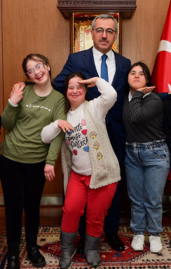 Kahramanmaraş Büyükşehir Belediye Başkanı Hayrettin Güngör, 21 Mart Dünya Down Sendromu Farkındalık Günü dolayısıyla 125. Yıl Özel Eğitim Okulu ve Kahramanmaraş Özel Eğitim Uygulama Okulu üçüncü kademe öğrencileri, aileleri ve öğretmenleriyle bir araya geldi. Misafirleriyle yakından ilgilenen Başkan Güngör, “Bugün çok değerli yavrularımızı, ailelerini ve öğretmenlerini misafir ettik. Öncelikle bu kıymetli çocuklarımızın ailelerine ve öğretmenlerine her zaman onların yanında oldukları ve desteklerini hiç esirgemedikleri için yürekten teşekkür ediyorum. Özel misafirlerimizle birlikte çok güzel vakit geçirdik. Devletimizin ve yerel yönetimlerimizin bu konudaki desteklerini çok önemli. Hamdolsun ülkemiz, sosyal devlet ilkesi çerçevesinde tüm vatandaşlarımıza çok ciddi destekler sağlıyor. Bu kıymetli yavrularımıza ne yapsak az. Kıymetli özel yavrularımızı misafir etmekten duyduğum mutluluğu ifade etmek istiyorum. Bu çocuklarımızın üzerinde emeği bulunan herkese tekrar teşekkür ediyorum. Büyükşehir Belediyesi olarak daima yanınızdayız” ifadelerini kullandı.
