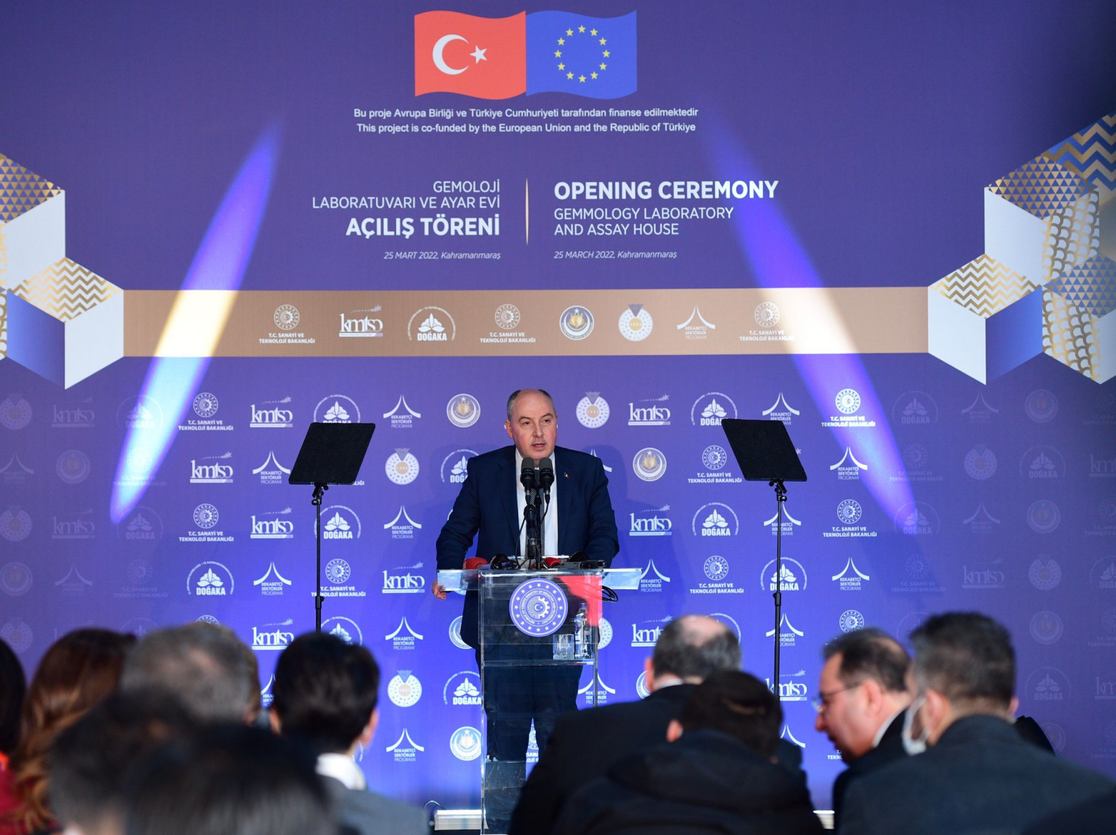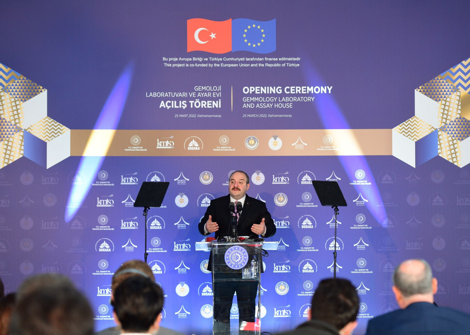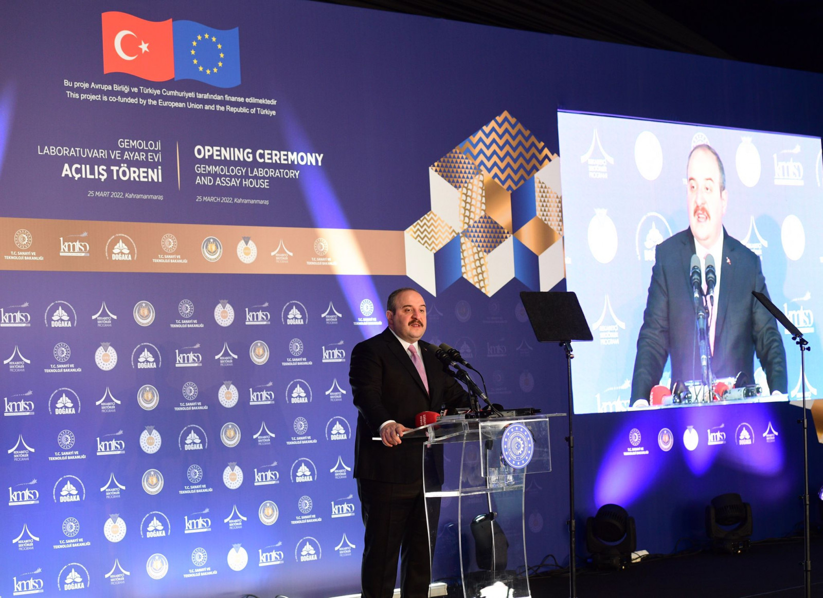 Kuyumcukent’te Gemoloji Laboratuvarı ve Ayar Evi’nin açılış törenine katılan Sanayi ve Teknoloji Bakanı Mustafa Varank, “Sanayi ve Teknoloji Bakanlığı olarak altın ve mücevher imalat ve ihracatında da Kahramanmaraş'ı dünyada söz sahibi bir merkez yapmak için bir yola çıkmıştık. Şu an içinde yer aldığımız ve ülkemizin en önemli üretim tesislerinden biri olan Kahramanmaraş Altınşehir Sanayi Sitemiz de bunu destekler nitelikte. Hayata geçirdiğimiz projeler sayesinde de inşallah bu hedefimize ulaşacağız” dedi.