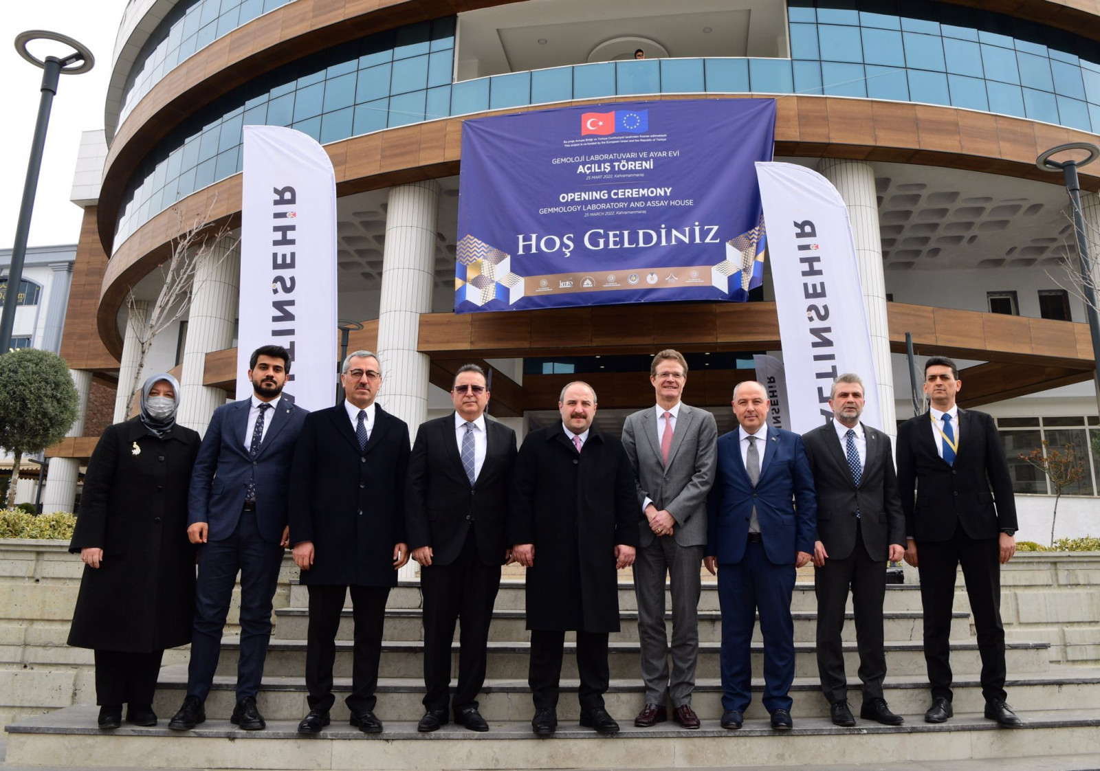 Kahramanmaraş Büyükşehir Belediye Başkanı Hayrettin Güngör, bir dizi ziyaret ve incelemelerde bulunmak için şehre gelen Sanayi ve Teknoloji Bakanı Mustafa Varank ile Kuyumcukent’te Gemoloji Laboratuvarı ve Ayar Evi’nin açılış törenine katıldı. Açılış töreninde Vali Ömer Faruk Coşkun, AB Türkiye Delegasyonu Başkanı Nikolaus Meyer-Landrut, Bankacılık Düzenleme ve Denetleme Kurulu Başkanı Mehmet Ali Akben, İçişleri Komisyon Başkanı Celalettin Güvenç, AK Parti Milletvekilleri Ahmet Özdemir ve Cihat Sezal, DOĞAKA Genel Sekreteri Oğuz Alibekiroğlu, Sütçü İmam Üniversitesi Rektörü Niyazi Can, AK Parti İl Başkanı Fırat Görgel, İl Kadın Kolları Başkanı Gül Çitil Okur, İl Gençlik Kolları Başkanı Feyzullah Eren Aşçı, Kuyumcular Odası Başkanı Hacı Mustafa Öz de yer aldı. Açılış töreninde sonra heyet, Kuyumcukent’te faaliyet gösteren esnafları ziyaret etti.