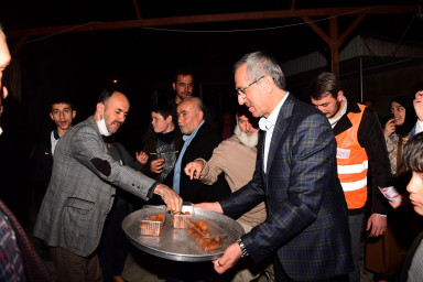TÜGVA İl Temsilciliğinin düzenlediği iftar yemeğine katılan Başkan Güngör, teravih namazının ardından Bertizliler Camii’nde vatandaşlarla bir araya gelerek tatlı ikramında bulundu.