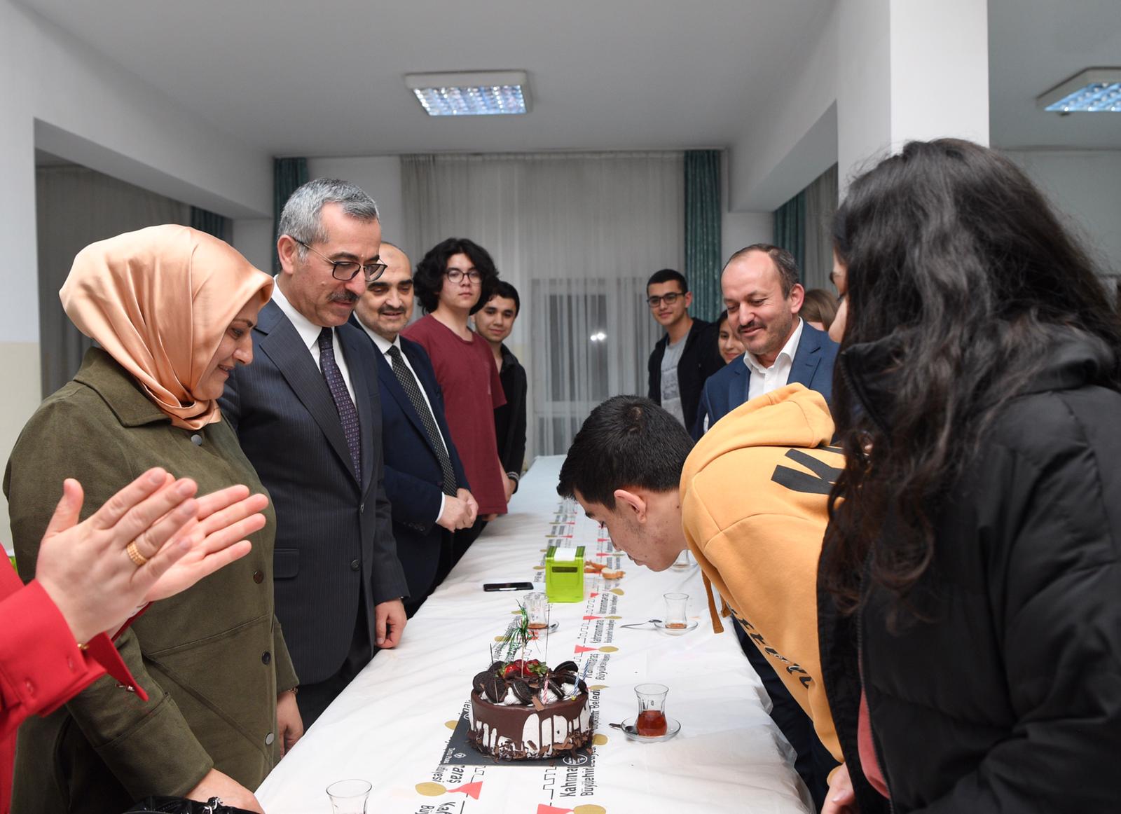 Kahramanmaraş Büyükşehir Belediye Başkanı Hayrettin Güngör, iftar sofralarında ve teravih namazlarından sonra vatandaşlarla bir araya gelmeye devam ediyor. Bu kapsamda Başkan Güngör, TOBB Fen Lisesi öğrencilerinin iftar sofrasına misafir oldu. TOBB Fen Lisesi öğrencileriyle birlikte iftar yapan Başkan Güngör, arkadaşları tarafından 12. sınıf öğrencisi Ali Şakalak’a düzenlenen sürpriz doğum günü kutlamasına katıldı. Öğrencilerle birlikte iftar yapmaktan duyduğu mutluluğu ifade eden Başkan Güngör, “Bugün TOBB Fen Lisesi öğrencilerinin iftar sofrasına misafir olduk. Başardığımız, hayal ettiğimiz ne varsa onlara emanet edeceğiz. Onları böyle birlik ve kardeşlik içinde görmek büyük mutluluk” dedi.