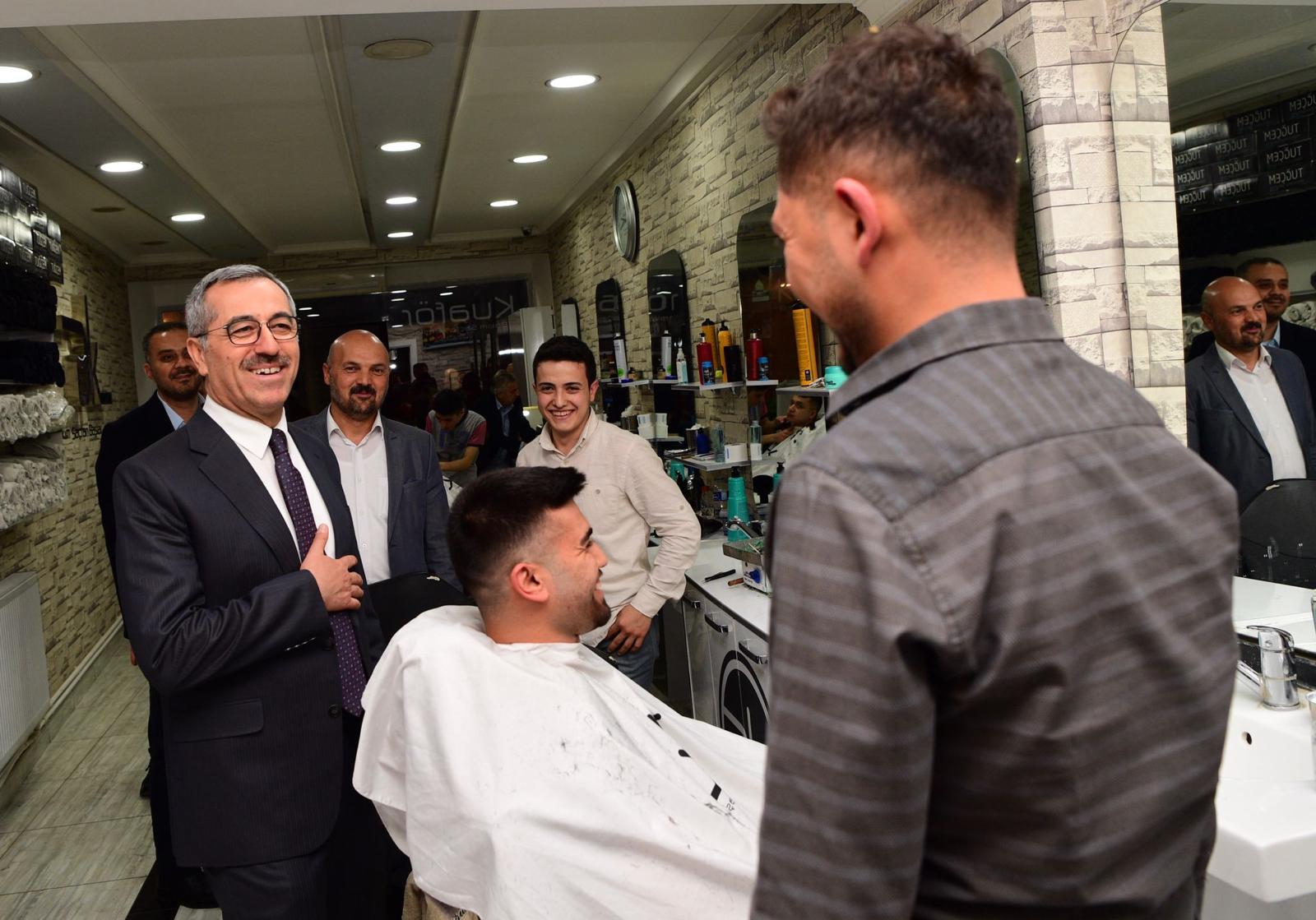 TOBB Fen Lisesi’nde öğrencilerle birlikte iftar yapan Başkan Güngör, teravih namazı çıkışında da Elif Hatun Camii’nde vatandaşlarla bir araya geldi. Vatandaşlarla bolca sohbet eden Başkan Güngör, tatlı ikramında da bulundu. Daha sonra Şekerdere Caddesi’nde esnaf ve vatandaşları ziyaret eden Büyükşehir Belediye Başkanı Hayrettin Güngör, “Mübarek Ramazan ayında her akşam iftar sofralarında ve teravih namazları sonrası hemşehrilerimizle bir araya gelmeye, onlarla muhabbet etmeye, istişarelerde bulunmaya gayret ediyoruz. Gerçekten onların teveccühleriyle karşılaşmak bizleri çok mutlu ediyor. Rabbim birlik ve beraberliğimizi daim eylesin” ifadelerini kullandı.