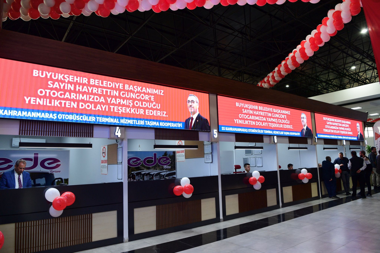 Sökmen, “Öncelikle pandemi sürecinde ve yenileme çalışmaları boyunca bizlerden desteğini esirgemeyen Büyükşehir Belediye Başkanımız Hayrettin Güngör’e teşekkür ediyorum. İhtiyaçlara cevap veremeyen, yetersiz olan otogarımız artık tamamen yenilendi. Başkan Güngör verdiği sözünü yerine getirdi. Hem terminalimizi yeniledi hem de yer tahsislerimizi verdi. Ayrıca yenileme süreci boyunca da bizden kira bedeli de almadı. Başkanımız hep yanımızdaydı. Çalışmalarından dolayı başta Büyükşehir Belediye Başkanımız Hayrettin Güngör olmak üzere emeği geçen herkese teşekkür ederim” diye konuştu.