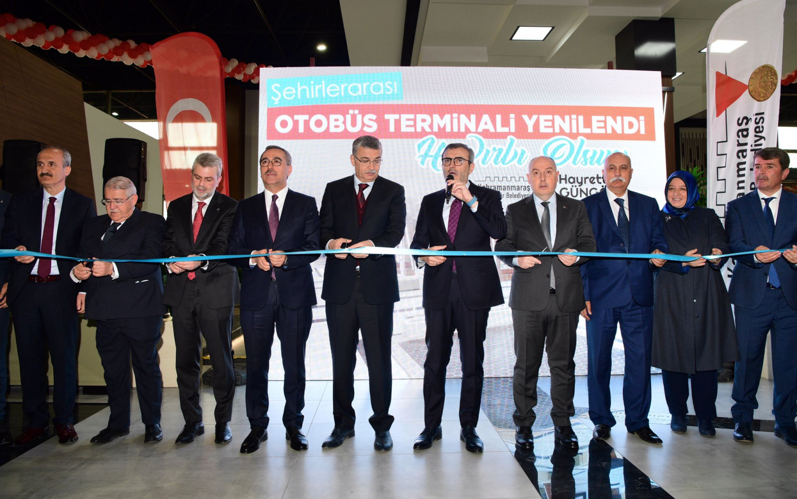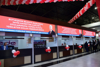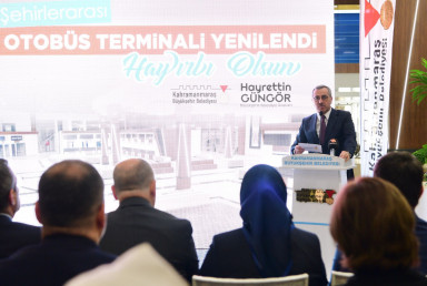 Kahramanmaraş Büyükşehir Belediyesi tarafından baştan uca yenilenen Şehirlerarası Otobüs Terminali’nin açılış töreni gerçekleştirildi. Programa Büyükşehir Belediye Başkanı Hayrettin Güngör’ün yanı sıra Vali Ömer Faruk Coşkun, AK Parti Grup Başkan Vekili Mahir Ünal, İçişleri Komisyonu Başkanı Celalettin Güvenç, ilçe belediye başkanları, AK Parti İl Başkanı Fırat Görgel, muhtarlar, STK temsilcileri ile vatandaşlar katıldı. Programın açılış konuşmasını yapan Terminal Hizmetleri ve Yolcu Taşımacılığı Kooperatifi Başkanı Bünyamin Sökmen, gerçekleştirilen yatırımın hem şehir hem de esnaf için çok önemli olduğunu ifade etti.
