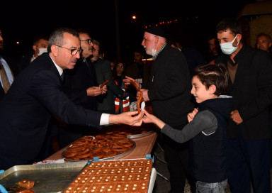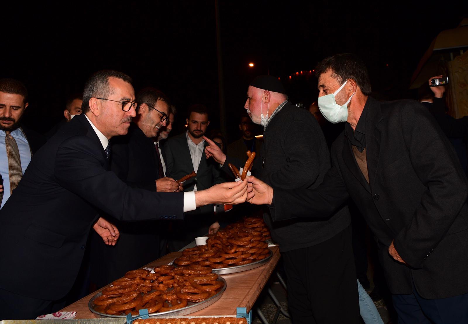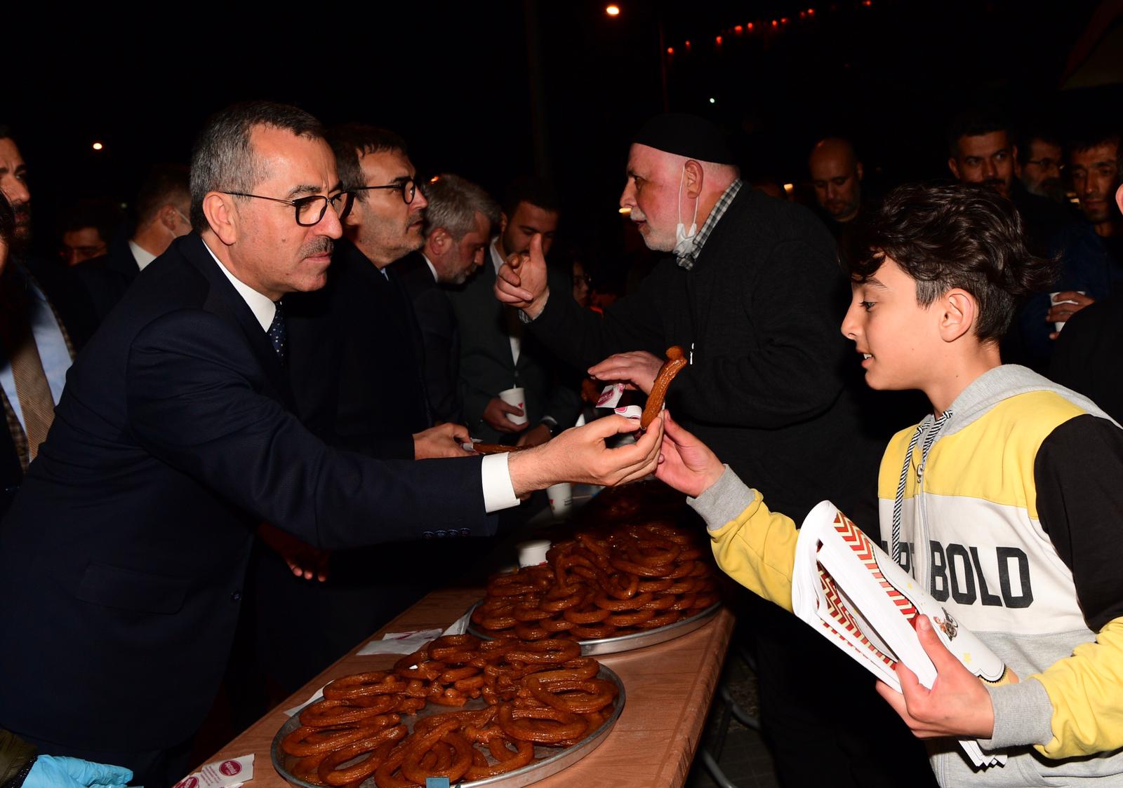 Büyükşehir Belediye Başkanı Hayrettin Güngör, programı kapsamında Kahramanmaraş’a gelen AK Parti Grup Başkan Vekili Mahir Ünal, AK Parti İl Başkanı Fırat Görgel ve Büyükşehir Belediyesi Gençlik Meclisi Başkanı Abdulvahap Dertli ile teravih namazı çıkışı Ulu Camii’de vatandaşlara tatlı ikramında bulundu.