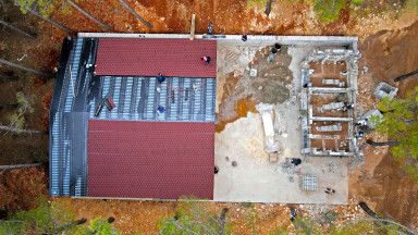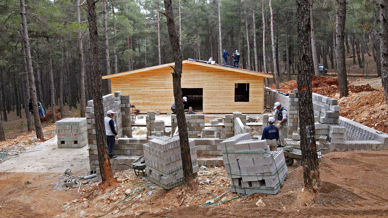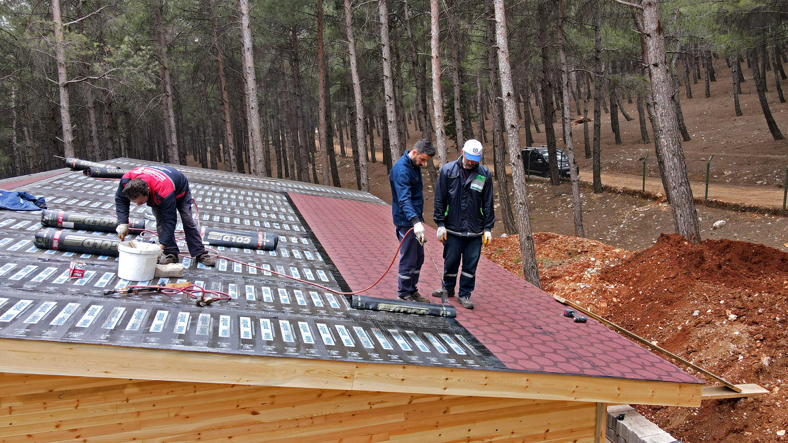 Büyükşehir Belediyesi ve İl Milli Eğitim Müdürlüğü iş birliğiyle Arslanbey Mesire Alanı’nda hayata geçirilen Doğa ve Fen Okulu projesinde çalışmalar devam ediyor. Betonarme ve lambri montajı tamamlanan yapıda çatı kaplama çalışmaları sürüyor.