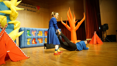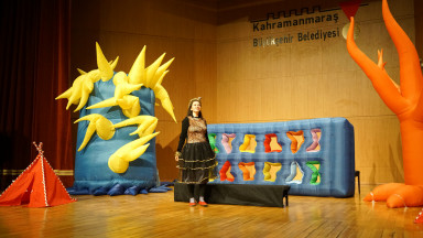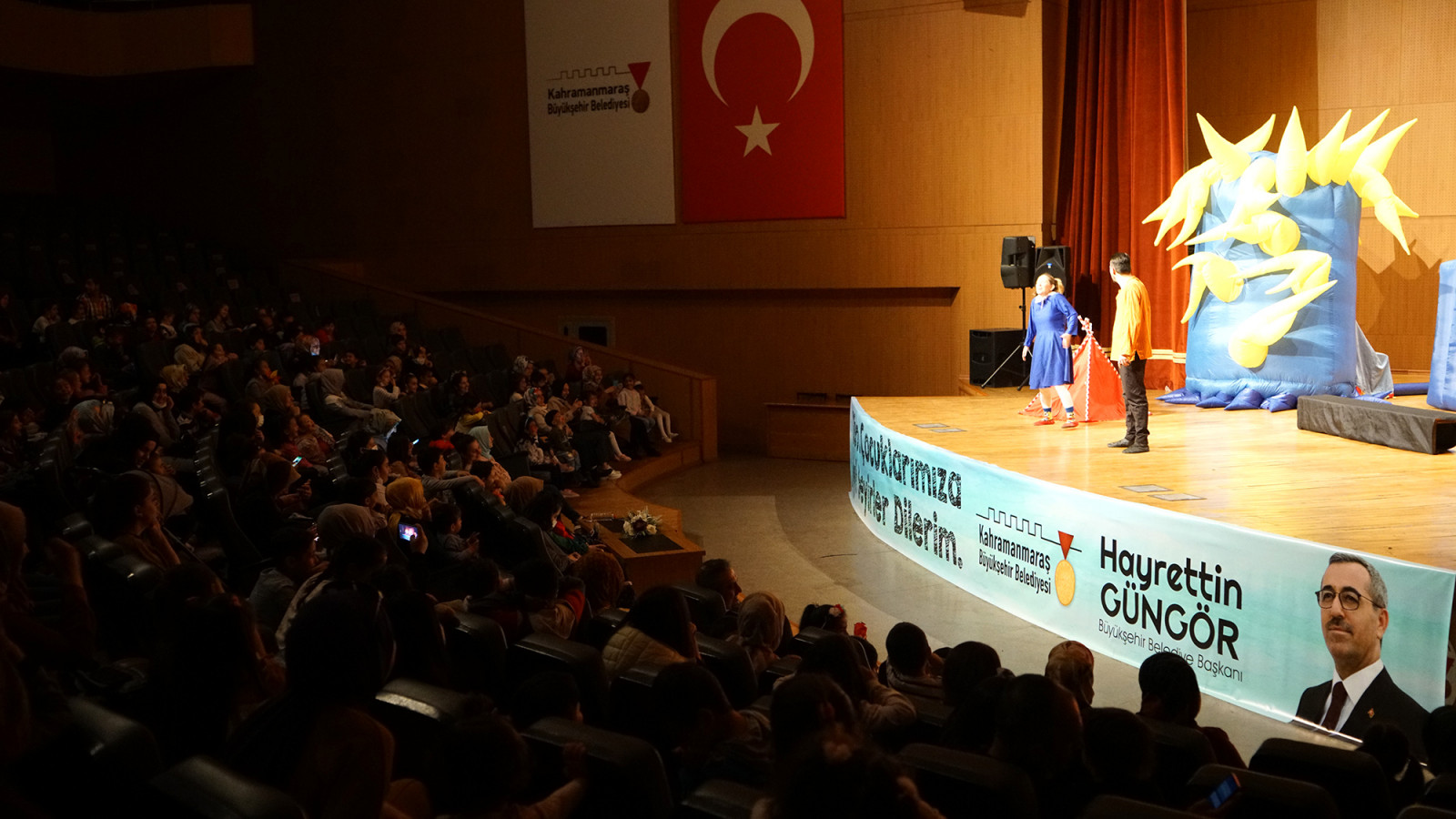 Kahramanmaraş Büyükşehir Belediyesi, kültür sanat etkinliklerini sürdürüyor. Bu kapsamda, okulların ara tatile girmesiyle birlikte öğrencilere yönelik çeşitli etkinlikler gerçekleştiriliyor. Etkinliklerin ilki bugün start aldı. Bu kapsamda, ‘Karne Heyecanı’ adlı çocuk tiyatrosu miniklerle buluştu. Mehmet Akif Ersoy Kültür Merkezi’nde sahnelenen oyuna minikler ve ebeveynleri yoğun ilgi gösterdi. Minikleri eğlendiren tiyatro gösterisi, ebeveynlere de eğitici dersler vermeyi ihmal etmedi. Ayrıca oyun öncesi gerçekleştirilen yüz boyama etkinliğinde gönüllerince eğlenen miniklerin neşesi görülmeye değerdi.