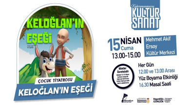 Büyükşehir Belediyesi tarafından, 15 Nisan Cuma günü Mehmet Akif Ersoy Kültür Merkezi’nde miniklere yönelik ‘Keloğlan’ın Eşeği’ adlı tiyatro gösterisi düzenlenecek. Yine aynı gün masal saati ve yüz boyama etkinlikleri de miniklerle buluşacak.