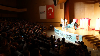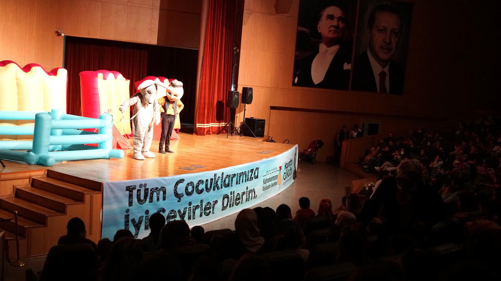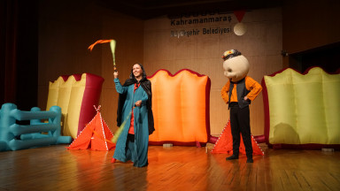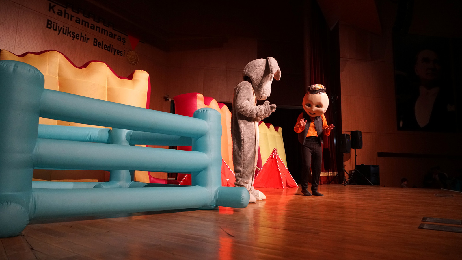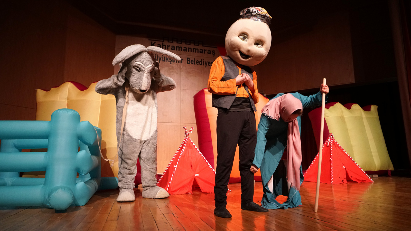 Kahramanmaraş Büyükşehir Belediyesi, kültür sanat etkinliklerini aralıksız sürdürüyor. Okulların ara tatile girmesini fırsat bilen Büyükşehir Belediyesi, çocuklara yönelik birbirinden eğlenceli ve öğretici etkinlikler düzenliyor. Etkinlikler kapsamında, ‘Keloğlan’ın Eşeği’ adlı tiyatro gösterisi miniklerle buluşturuldu. Mehmet Akif Ersoy Kültür Merkezi’nde gerçekleştirilen etkinliğe minikler ve ebeveynleri yoğun ilgi gösterdi. Kardeşlik, arkadaşlık ve dostluk temalarının ön planda tutulduğu oyun izleyicilerin beğenisini kazandı. Tiyatro gösterisinde gönüllerince eğlenen miniklerin mutlulukları gözlerinden okunuyordu.