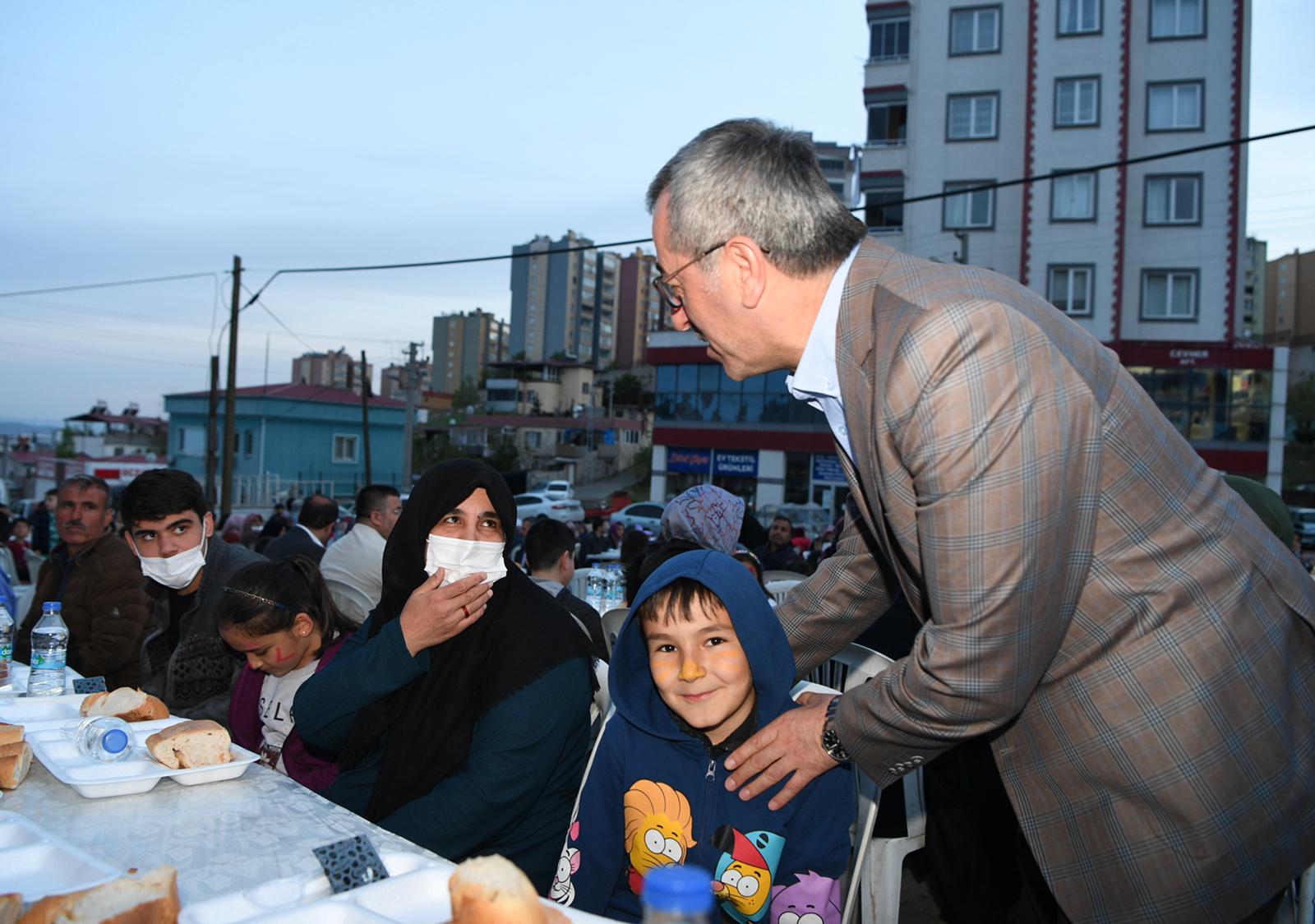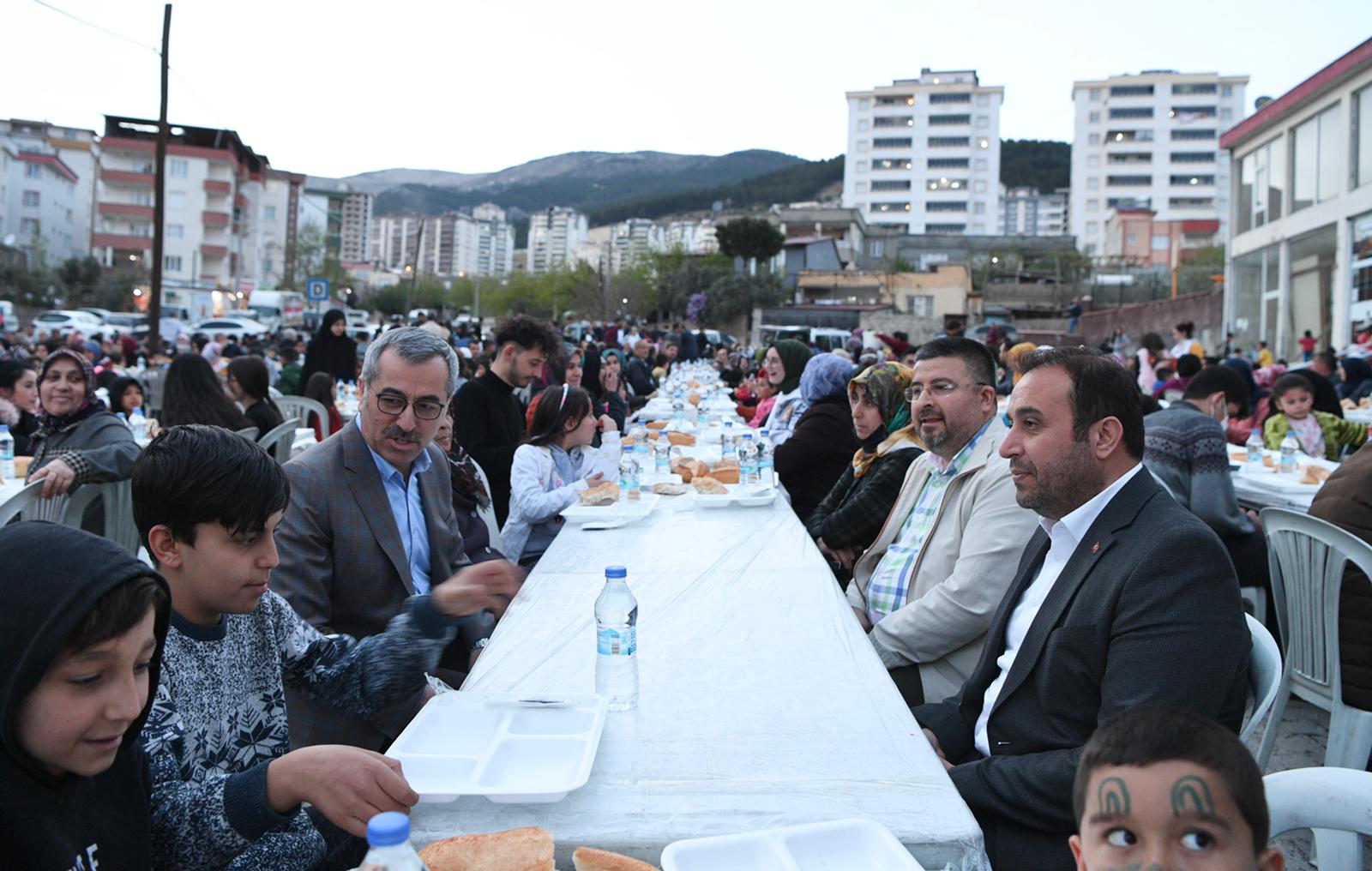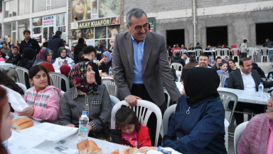 Kahramanmaraş Büyükşehir Belediye Başkanı Hayrettin Güngör, Ramazan ayında iftar sofralarında, teravih namazları sonrası ve sahurda vatandaşlarla bir araya gelmeye devam ediyor. Bu kapsamda Başkan Güngör, Onikişubat Saçaklızade Mahalle Muhtarlığı tarafından organize edilen iftar programında vatandaşlarla bir araya geldi. Mahalle sakinleriyle birlikte iftar yapan Başkan Güngör, “Mübarek Ramazan’da sık sık hemşehrilerimizle bir araya gelmeye, onlarla sohbet etmeye gayret ediyoruz. Bugün de Saçaklızade Mahalle Muhtarlığımız tarafından organize edilen iftar yemeğinde hemşehrilerimizle bir araya geldik. Hep birlikte yapılan iftarların tadı bir başka oluyor” dedi.