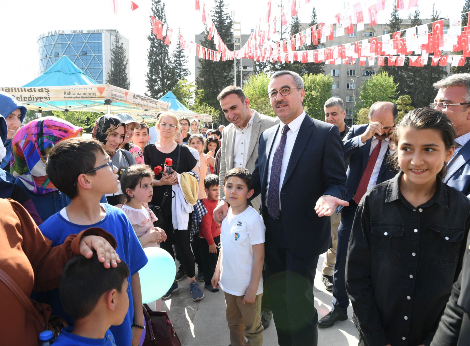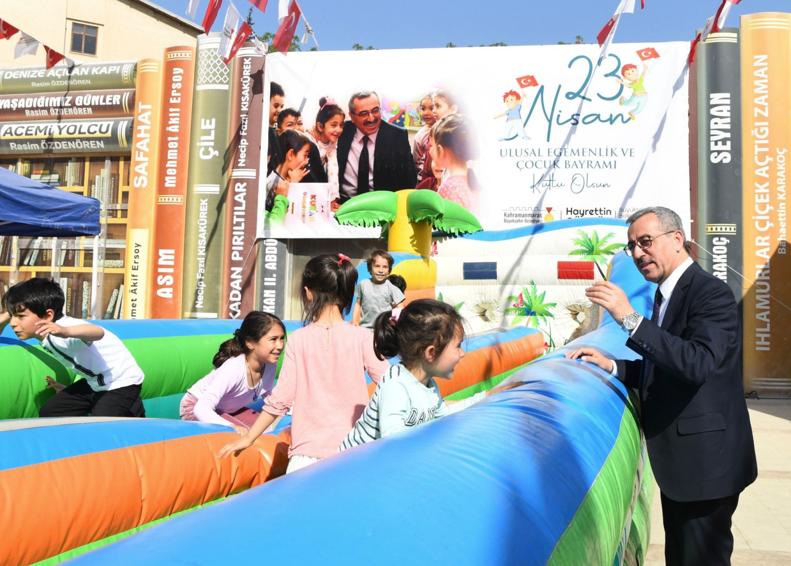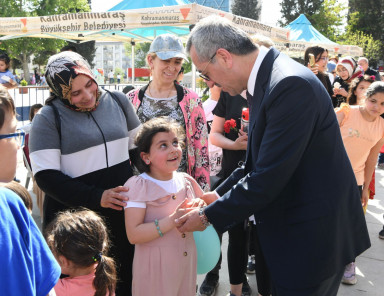 Kahramanmaraş Büyükşehir Belediye Başkanı Hayrettin Güngör, 23 Nisan Ulusal Egemenlik ve Çocuk Bayramı dolayısıyla Büyükşehir Belediyesi ve İl Milli Eğitim Müdürlüğü iş birliğiyle Milli İrade Meydanı’nda düzenlenen ‘Çocuk Şenliği’nde miniklerle bir araya geldi. Alana kurulan şişme maskot ve oyun alanlarıyla gönüllerince eğlenen miniklerle bir araya gelen Başkan Güngör, çocukların eğlencelerine ortak oldu. Milli İrade Meydanı’nda çocuklarla ve aileleriyle bolca sohbet eden Başkan Güngör, “Öncelikle tüm yavrularımızın 23 Nisan Ulusal Egemenlik ve Çocuk Bayramı’nı tebrik ediyorum. Bu vesileyle bir kez daha bu muazzez toprakları bizlere miras bırakan Gazi Mustafa Kemal Atatürk ve silah arkadaşlarını, şehitlerimizi ve gazilerimizi saygı ve minnetle anıyorum” dedi.