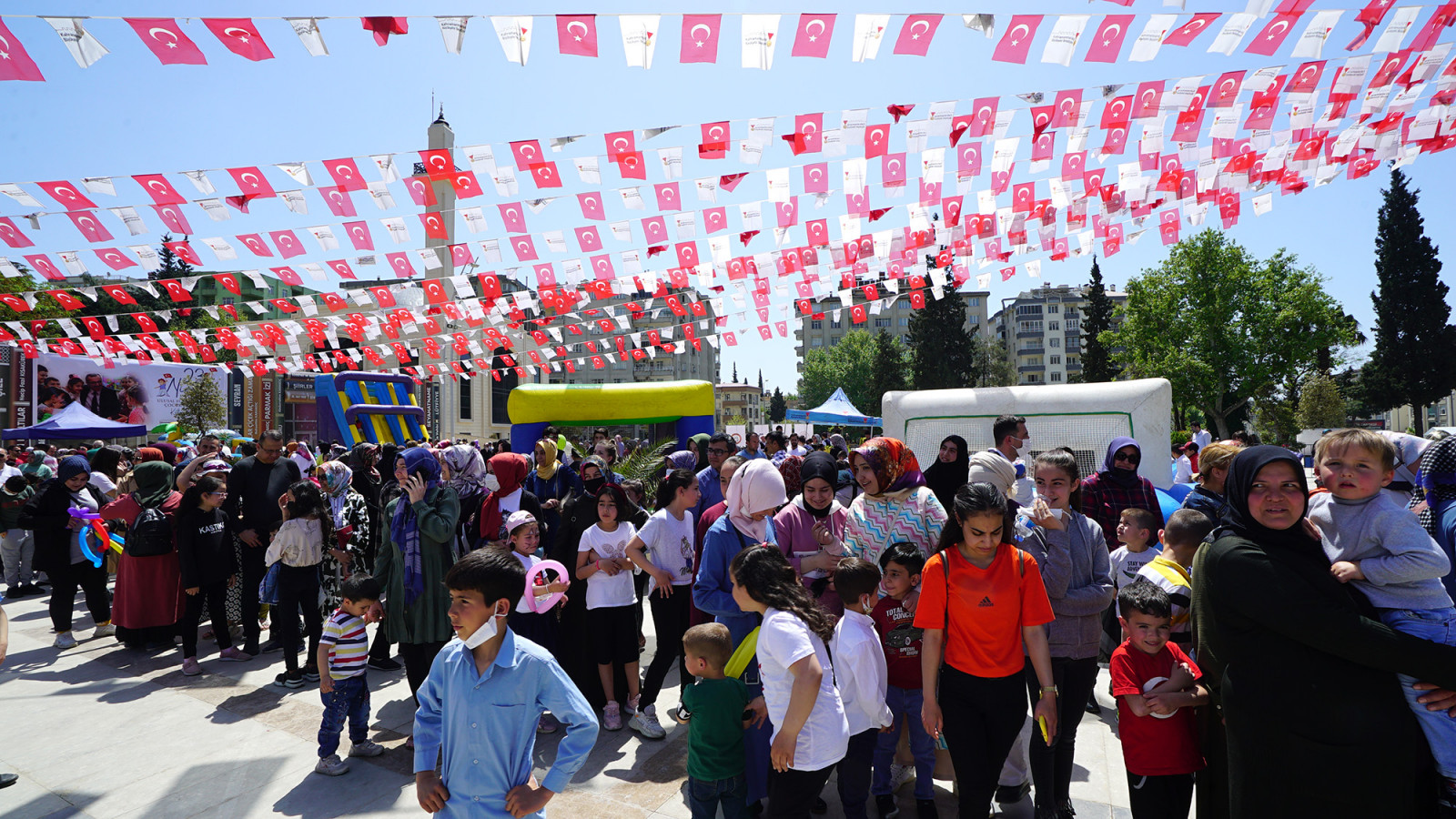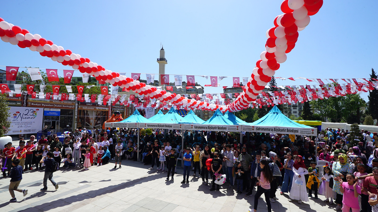 Kahramanmaraş Büyükşehir Belediyesi, 23 Nisan Ulusal Egemenlik ve Çocuk Bayramı dolayısıyla birbirinden renkli ve eğlenceli etkinlikler düzenliyor. Bu kapsamda, Milli İrade Meydanı’nda gerçekleştirilen ‘Çocuk Şenliği’nde minikler doyasıya eğlendi. Milli İrade Meydanı’na kurulan şişme oyun alanlarında gönüllerince eğlenen miniklerin neşesi görülmeye değerdi. Alanda gerçekleştirilen yarışmalar, atölyeler, animasyon gösterileri de renkli anlara sahne oldu. Minikler ve aileleri alana kurulan platformda birbirinden eğlenceli yarışmalarda kıyasıya mücadele etti. Yarışmalar sonunda kazanan miniklere çeşitli hediyeler verildi. Gerçekleştirilen etkinliklerden dolayı çocuklar ve aileleri Büyükşehir Belediye Başkanı Hayrettin Güngör’e teşekkür etti.