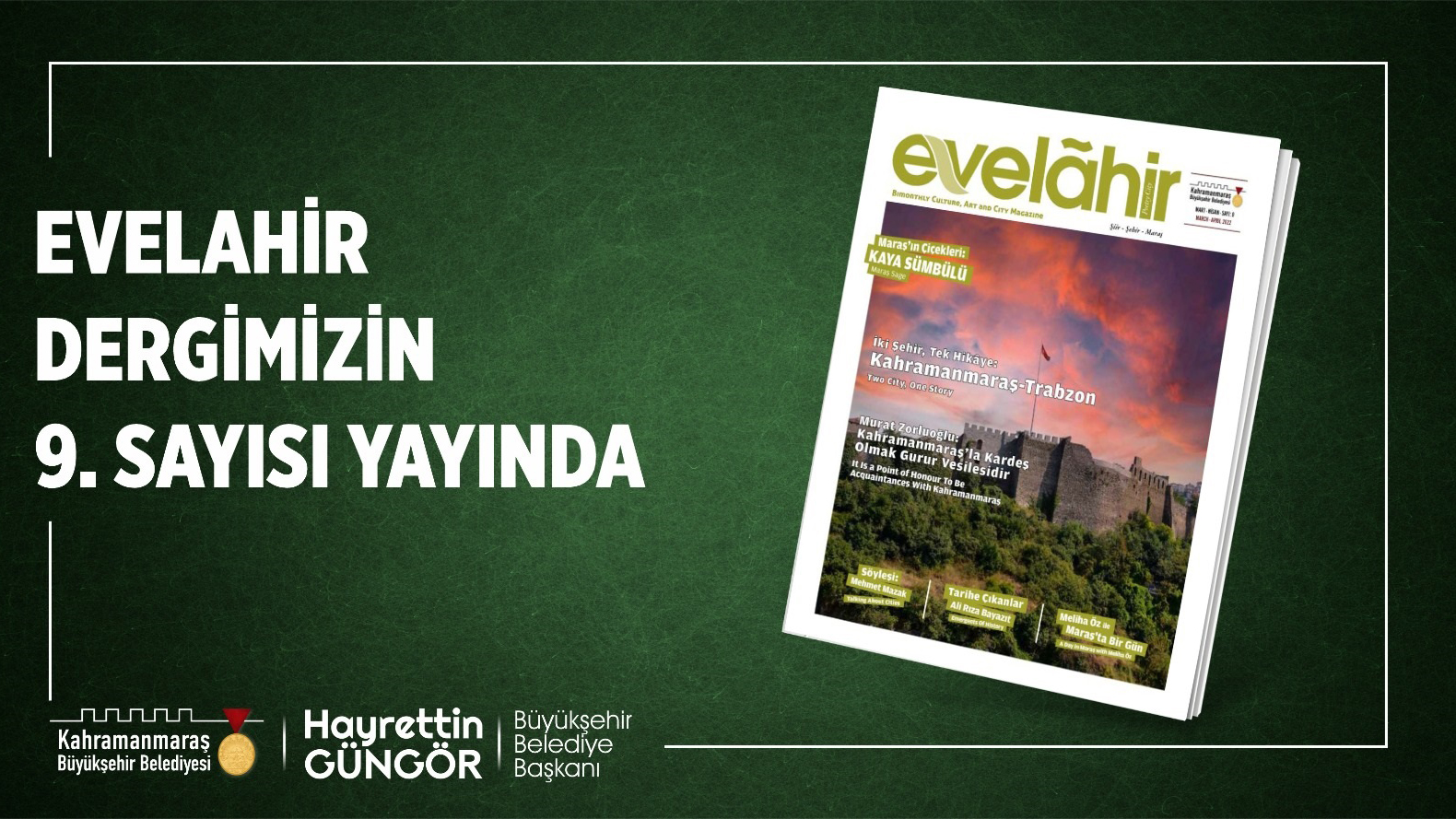 Kahramanmaraş Büyükşehir Belediyesi tarafından hazırlanan Evelahir Dergisi yeni sayısıyla okurlarıyla buluştu. Tüm süreçleri Büyükşehir Belediyesi tarafından organize edilen kültür ve sanat dergisi Evelahir’in dokuzuncu sayısı yayımlandı. Derginin yeni sayısında Maraş’ın Milli Mücadelesi, şehre İstiklal Madalyası’nın verilişi, şehirde kültür - sanat alanında hayata geçirilen faaliyetler gibi pek çok konu farklı açılardan ele alınıyor. Derginin yeni sayısında Trabzon Büyükşehir Belediye Başkanı Murat Zorluoğlu, Hattat Kuddusi Doğan, Doç. Dr. Nadire Karademir, Yazar Mehmet Mazak gibi önemli şahsiyetlerle yapılan söyleşiler de yer alıyor. Okurlar, Büyükşehir Belediyesi Kültür Yayınları’ndan olan Yitiksöz, Evelahir, Berdücesi ve Müşterek dergilerinin aktüel ve geçmiş sayılarına e-dergi formatında https://kahramanmaras.bel.tr/e-dergi ve https://www.marastaedebiyat.com/belediye-yayinlari adresi üzerinden ulaşılabiliyor.