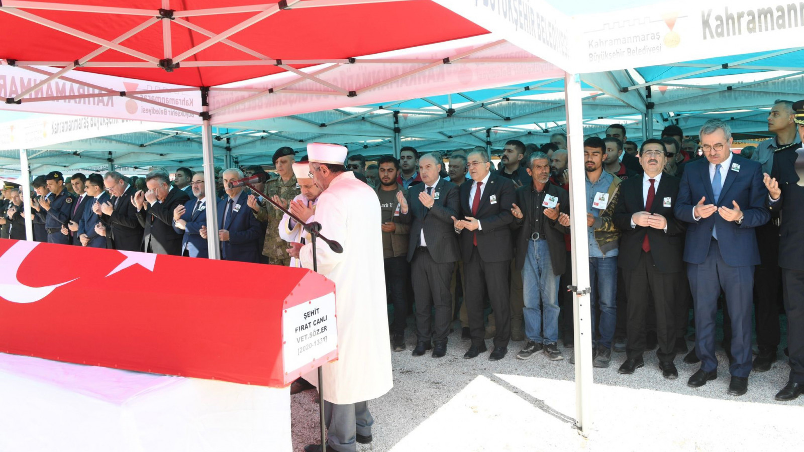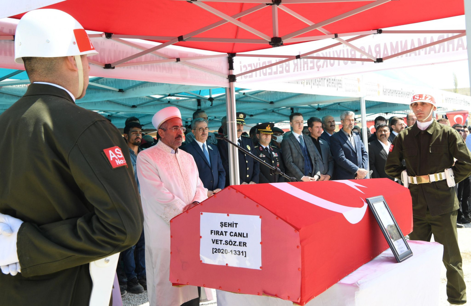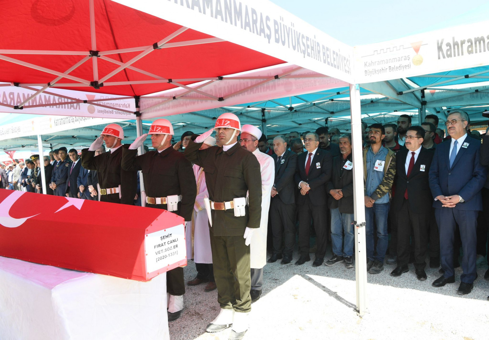 Kahramanmaraş Büyükşehir Belediye Başkanı Hayrettin Güngör, Pençe – Kilit operasyonunda şehit olan Veteriner Sözleşmeli Er Fırat Canlı’nın cenaze törenine katıldı. Şehit Vet. Söz. Er Fırat Canlı’nın Afşin Küçüktatlar Mahalle mezarlığında düzenlenen cenaze töreninde Başkan Güngör’ün yanı sıra Tarım ve Orman Bakan Yardımcısı Nihat Pakdil, Milli Savunma Bakan Yardımcısı Şuay Alpay, Vali Ömer Faruk Coşkun, TBMM İçişleri Komisyon Başkanı Celalettin Güvenç, Garnizon Komutanı Emin Mehmet Terzioğlu, İl Jandarma Komutanı Mustafa Özdurhan, İl Emniyet Müdürü Salim Cebeloğlu, AK Parti İl Başkanı Fırat Görgel, belediye başkanları, protokol üyeleri ve çok sayıda vatandaş da yer aldı. Cenaze töreninde şehit yakınlarının yanında olan ve baş sağlığı dileklerini ileten Büyükşehir Belediye Başkanı Hayrettin Güngör, “Şehidimiz Fırat Canlı’yı Rahmet-i Rahman’a uğurladık. Aziz şehidimize Allah’tan rahmet, kederli ailesine ve milletimize sabırlar diliyorum” dedi.