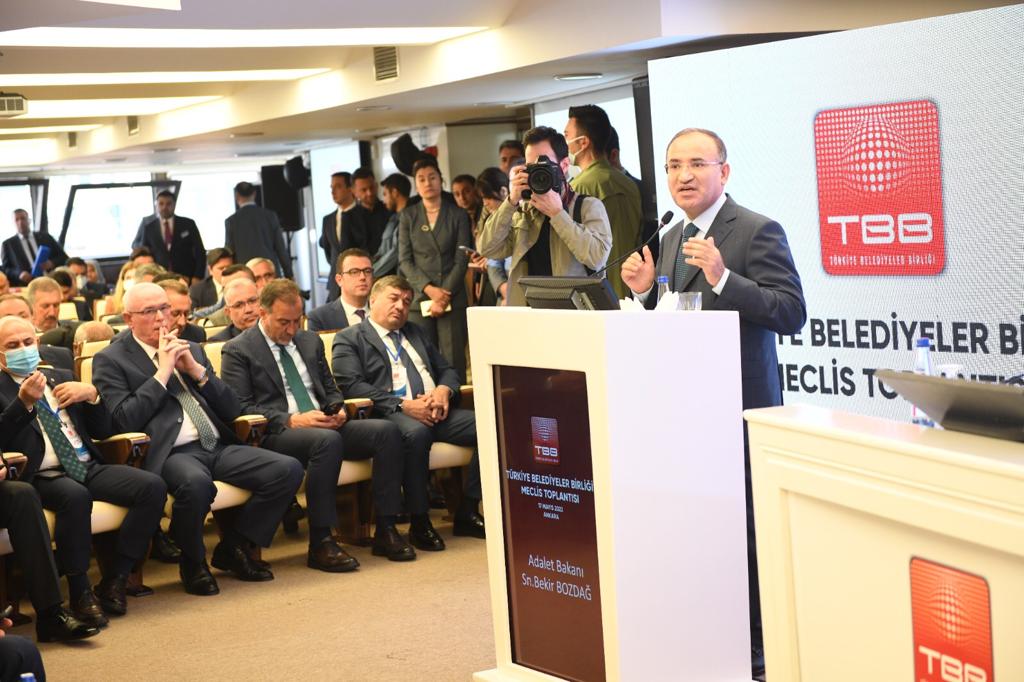 Kahramanmaraş Büyükşehir Belediye Başkanı Hayrettin Güngör, Türkiye Belediyeler Birliği (TBB) Meclis Toplantısı’na katıldı. Adalet Bakanı Bekir Bozdağ’ın katılımıyla Ankara Türkiye Belediyeler Birliği Hizmet Binası’nda gerçekleştirilen toplantıda Cumhurbaşkanlığı Yerel Yönetim Politikalar Kurulu Başkan Vekili Prof. Dr. Şükrü Karatepe, belediye başkanları ve meclis üyeleri de yer aldı. Toplantıda Türkiye Belediyeler Birliği Genel Sekreter Yardımcısı Halil İbrahim Azak, 2021 yılı Faaliyet Raporu hakkında meclise bilgi aktardı. Toplantının hayırlara vesile olmasını dileyen Büyükşehir Belediye Başkanı Hayrettin Güngör, “Adalet Bakanımız Sayın Bekir Bozdağ’ın teşrifleriyle Türkiye Belediyeler Birliğimizin Mayıs ayı Olağan Meclis Toplantısı’nı gerçekleştirdik. Birliğimizin faaliyetleri ile ilgili konuları birlik meclisimizle birlikte karara bağladık. Toplantımızın birliğimiz adına hayırlara vesile olmasını diliyorum” diye konuştu.