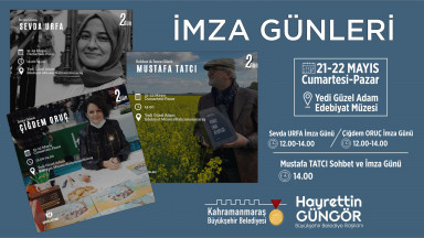 Büyükşehir Belediyesi, kültür sanat etkinlikleri kapsamında 21 – 22 Mayıs tarihlerinde imza günü ve söyleşi etkinliği düzenleyecek. Yedi Güzel Edebiyat Müzesi’nde gerçekleştirilecek etkinlikte usta yazarlar Sevda Urfa, Çiğdem Oruç ve Mustafa Tatcı Kahramanmaraşlılarla bir araya gelecek.