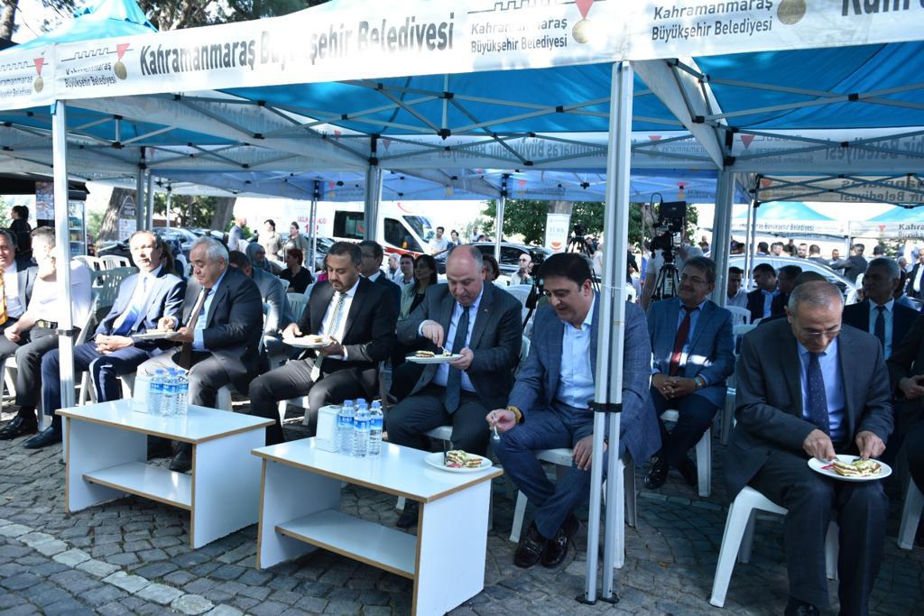 Cumhurbaşkanlığı himayesinde, Kültür ve Turizm Bakanlığı’nın desteğiyle organize edilen 21 – 27 Mayıs Türk Mutfağı Haftası dolayısıyla Büyükşehir Belediyesi, Valilik, İl Kültür ve Turizm Müdürlüğü, Kahramanmaraş Ticaret ve Sanayi Odası, ilçe belediyeleri ve birçok kurumun katılımıyla etkinlik gerçekleştirildi. Tarihi Maraş Kalesi’nde gerçekleştirilen etkinlikte Vali Ömer Faruk Coşkun, Büyükşehir Belediye Başkan Vekili Hanifi Toptaş, İl Jandarma Komutanı Mustafa Özdurhan, İl Kültür ve Turizm Müdürü Seydihan Küçükdağlı, İl Milli Eğitim Müdürü Yusuf Kahraman, Aile ve Sosyal Hizmetler İl Müdürü Mutlu Kaya, Gençlik ve Spor İl Müdürü Cemil Boz, KASKİ Genel Müdürü Ahmet Kavak, kaymakamlar, ilçe belediye başkanları, kurum temsilcileri ve çok sayıda vatandaş da yer aldı. Saygı duruşu ve İstiklal Marşı’nın okunmasıyla başlayan programda Büyükşehir Belediyesi bando ekibi, gerçekleştirdiği Maraş Türküleri dinletisiyle katılımcılara müzik ziyafeti yaşattı. Türk Mutfağı Haftası dolayısıyla gerçekleştirilen açılış programında katılımcılara bazlama, firik tarhanası, Çağlayancerit Cevizi, fıstık ezmesi, Maraş Dövme Dondurması, Ravanda ve Mayam Şerbeti gibi yöresel lezzetler de ikram edildi. Programda Vali Ömer Faruk Coşkun ve protokol üyeleri, Sivas Cumhuriyet Üniversitesi’nin düzenlediği Anadolu’nun Mirası Soframda adlı üniversiteler arası yemek yarışmasında Türkiye ikincisi olan KSÜ Sosyal Bilimler Meslek Yüksekokulu Aşçılık Programı öğrencilerine teşekkür belgesi takdim etti.