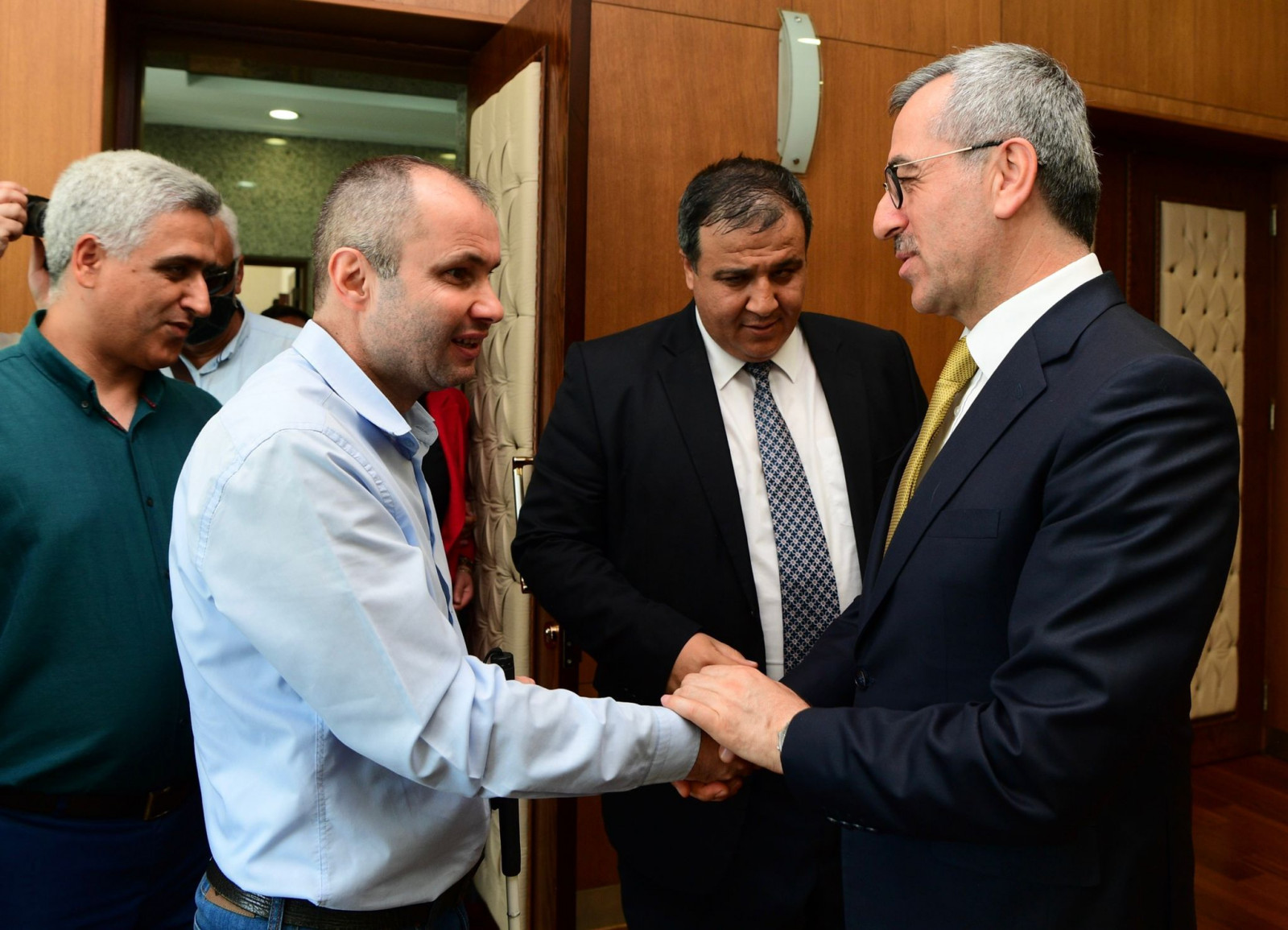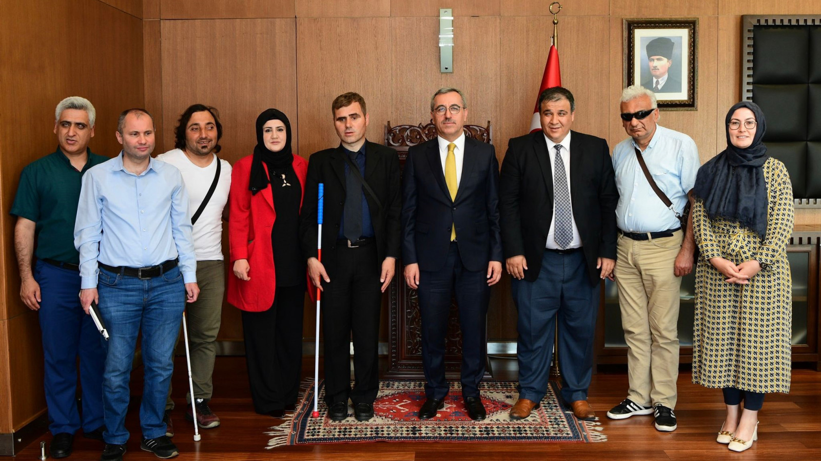 Kahramanmaraş Büyükşehir Belediye Başkanı Hayrettin Güngör, Türkiye Görme Engelliler Spor Federasyonu Yönetim Kurulu Üyesi Kenan Demir, Türkiye Görme Engelliler Derneği (TURGED) Genel Başkanı Fatih Karadayı, Genel Merkez Yönetim Kurulu Üyeleri ve Kahramanmaraş Şube Başkanı Mustafa Çakmak ile bir araya geldi. Kahramanmaraş’ta engellilere yönelik sağlanan desteklerden dolayı Büyükşehir Belediye Başkanı Hayrettin Güngör’e teşekkür eden TURGED Kahramanmaraş Şube Başkanı Mustafa Çakmak, “Kahramanmaraş Büyükşehir Belediyesi tarafından şehrimizde engellilere yönelik pek çok destek sağlanıyor. Şehrimizde engellilerin erişebilirlik sorunu Hayrettin Güngör Başkanımızın destekleriyle ve gerçekleştirdiği projelerle son buldu diyebilirim. Hayrettin Güngör Başkanımız varsa engelli bireylerin yolu açık” dedi.