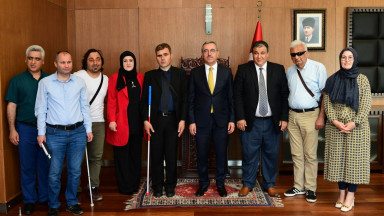 Türkiye Görme Engelliler Spor Federasyonu Yönetim Kurulu Üyesi, TURGED Genel Başkanı, Yönetim Kurulu Üyeleri ve Kahramanmaraş Şube Başkanı’nı makamında ağırlayan Başkan Güngör, “Engelli kardeşlerimize yönelik gerçekleştirdiğimiz proje ve faaliyetlerle erişilebilirlik konusunda Türkiye’de örnek şehirlerden biriyiz” dedi.