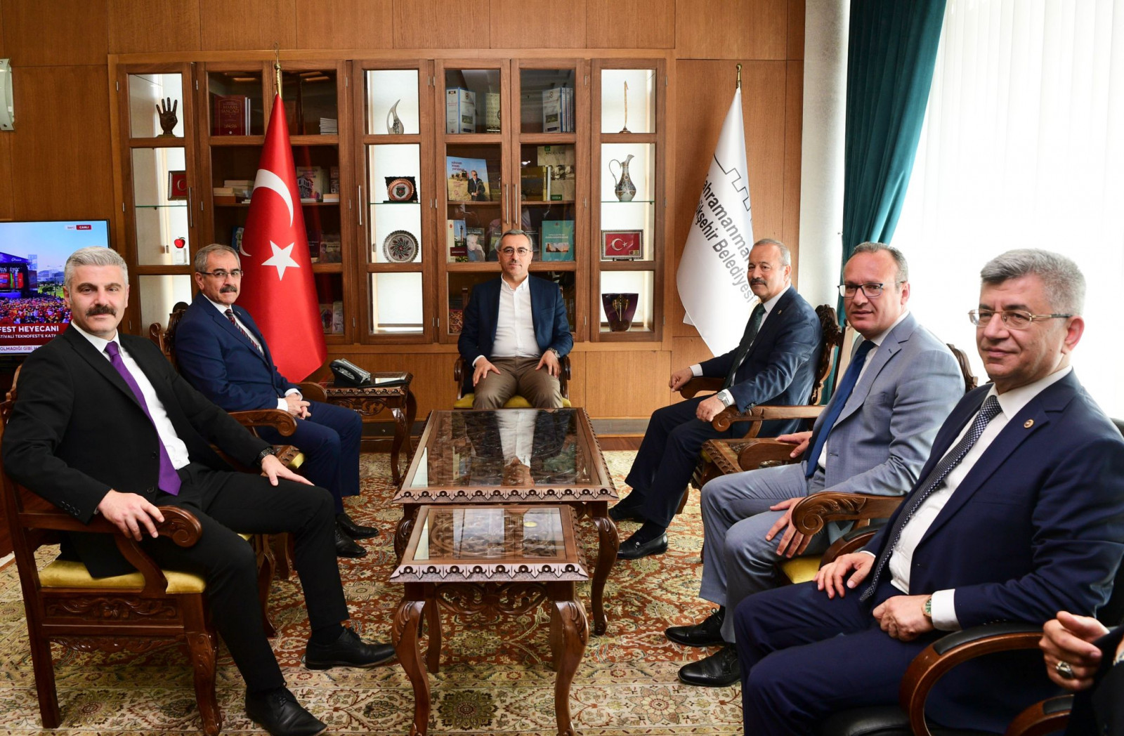 Kahramanmaraş Büyükşehir Belediye Başkanı Hayrettin Güngör, programı kapsamında şehre gelen Milliyetçi Hareket Partisi Merkez Yönetim Kurulu Üyesi ve Afyonkarahisar Milletvekili Mehmet Taytak, Merkez Disiplin Kurulu Başkan Vekili Niyazi Paksoy ve Merkez Yönetim Kurulu Üyesi Bahadır Alperen’i makamında ağırladı. Milliyetçi Hareket Partisi Kahramanmaraş Milletvekili Sefer Aycan ve İl Başkanı Ertuğrul Doğan’ın da yer aldığı ziyaret ile ilgili açıklamalarda bulunan Başkan Hayrettin Güngör, “Bugün Cumhur İttifakımız Milliyetçi Hareket Partisi’nden Afyonkarahisar Milletvekili Mehmet Taytak, MDK Başkan Vekili Niyazi Paksoy ve MYK Üyesi Bahadır Alperen’i, şehrimiz Milletvekili Sayın Sefer Aycan ve İl Başkanı Ertuğrul Doğan ile birlikte ağırladık. Ziyaretlerinden dolayı kendilerine teşekkür ediyorum” ifadelerini kullandı.