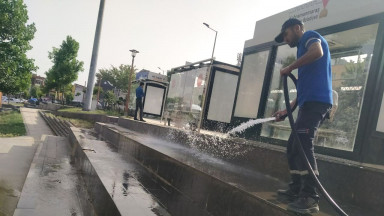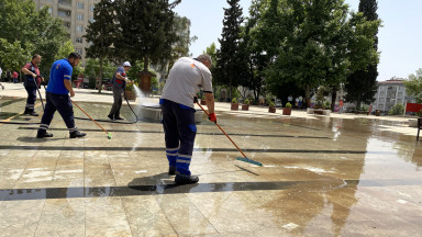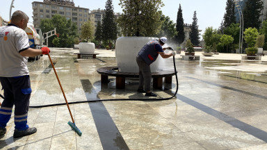Büyükşehir Belediyesi, şehirde etkili olan toz taşınımı nedeniyle oluşabilecek olumsuzlukların önüne geçmek için şehrin muhtelif yerlerinde temizlik çalışması gerçekleştiriyor.