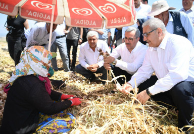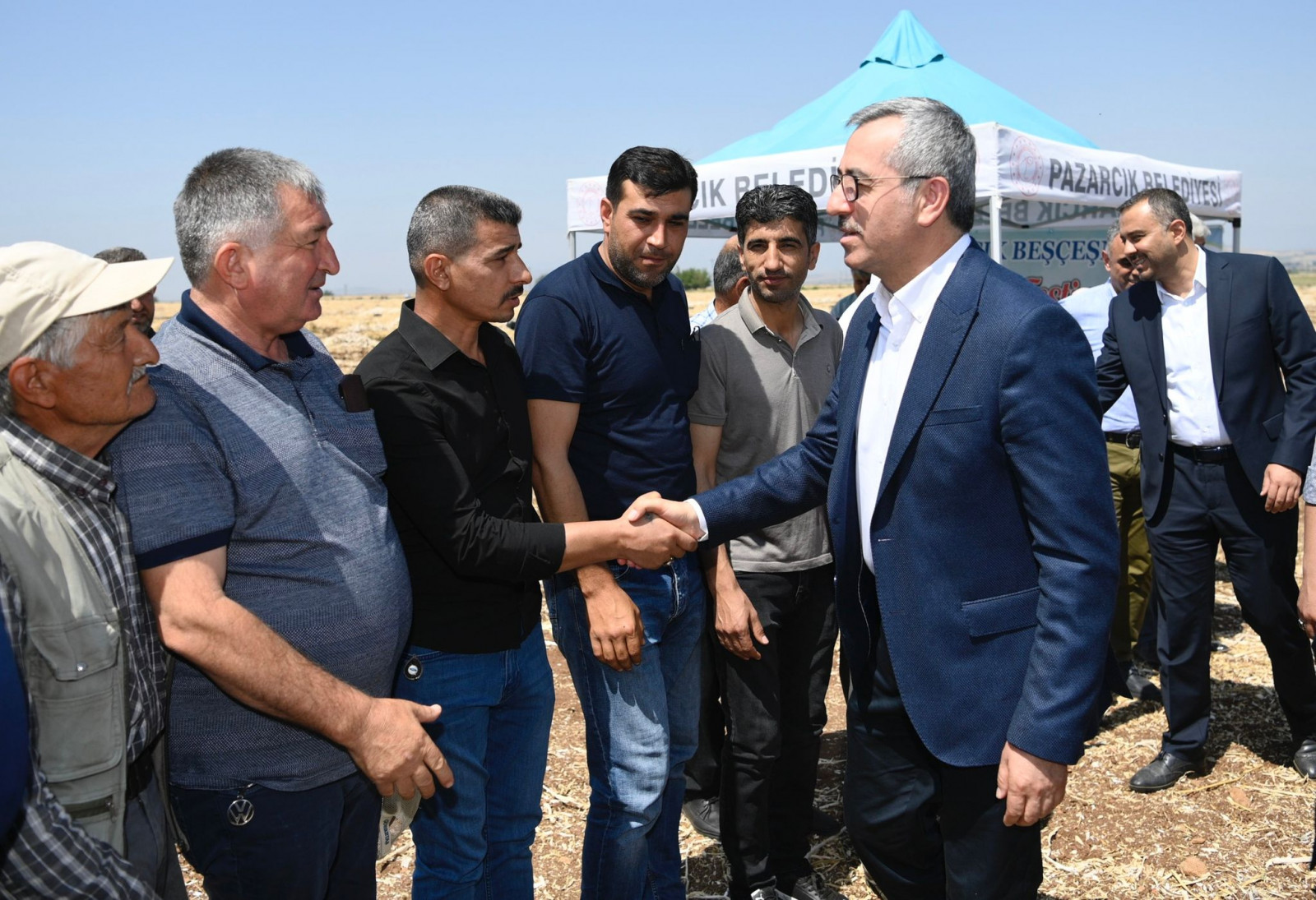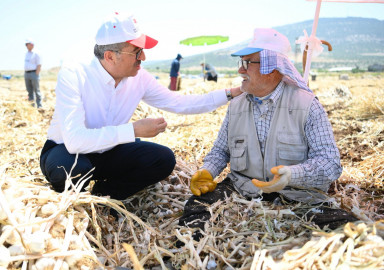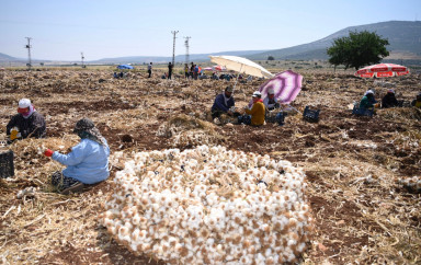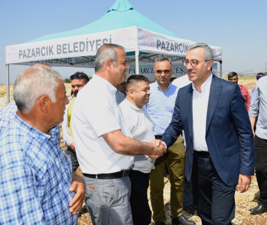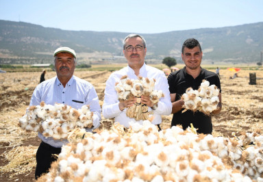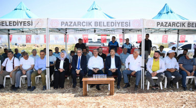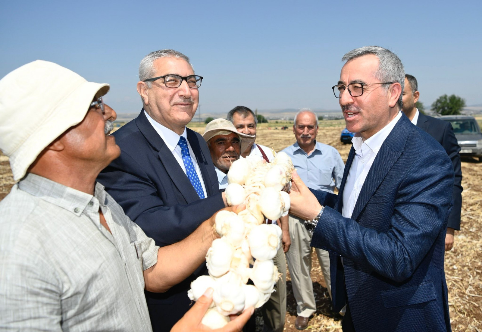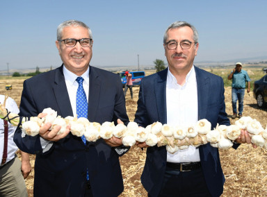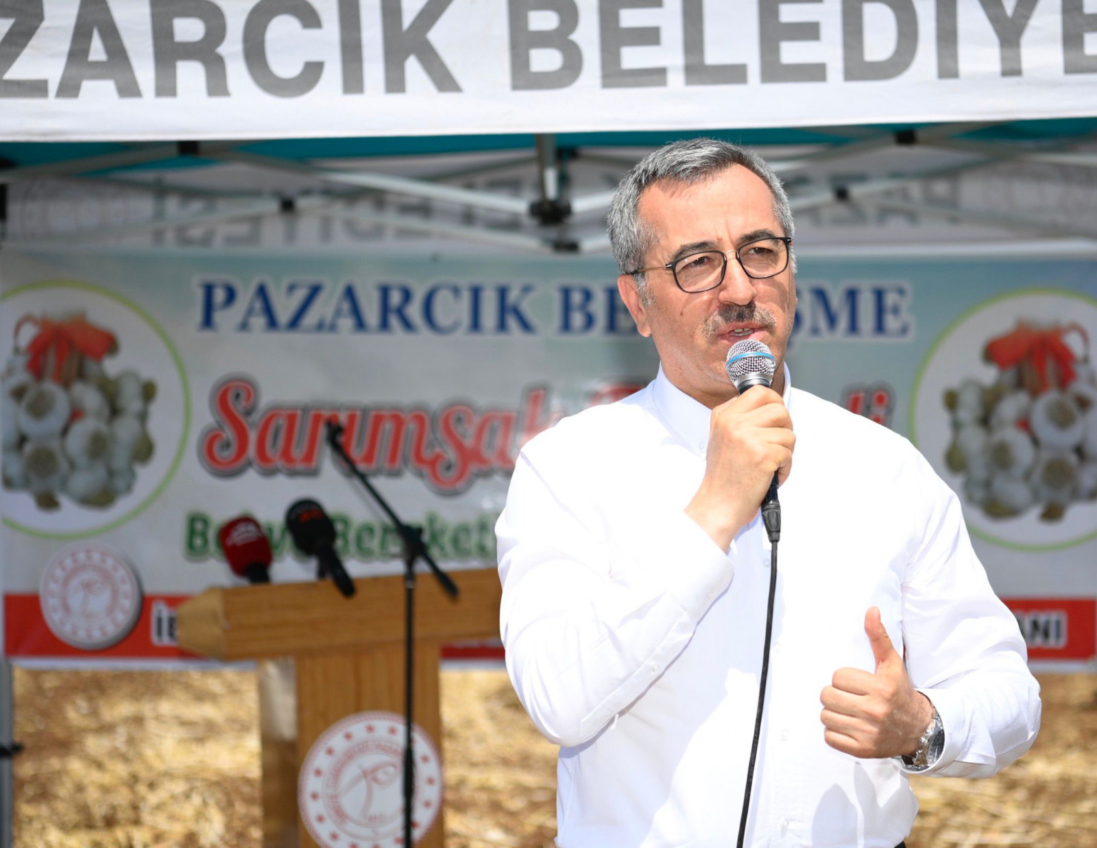 Pazarcık Beşçeşme’de sarımsak hasadına katılan Başkan Hayrettin Güngör, “Kahraman şehrimiz coğrafyası, iklimi, birçok coğrafi bölgede toprağının olmasıyla çok fazla tarım ürününe ev sahipliği yapıyor. Sarımsak üretiminde Türkiye’de üçüncü sırada yer alıyoruz. Geçtiğimiz yıl şehrimizde toplamda 50 bin tonun üzerinde sarımsak üretildi. İnşallah bu yıl daha fazla üretim olacağını ümit ediyorum” dedi.