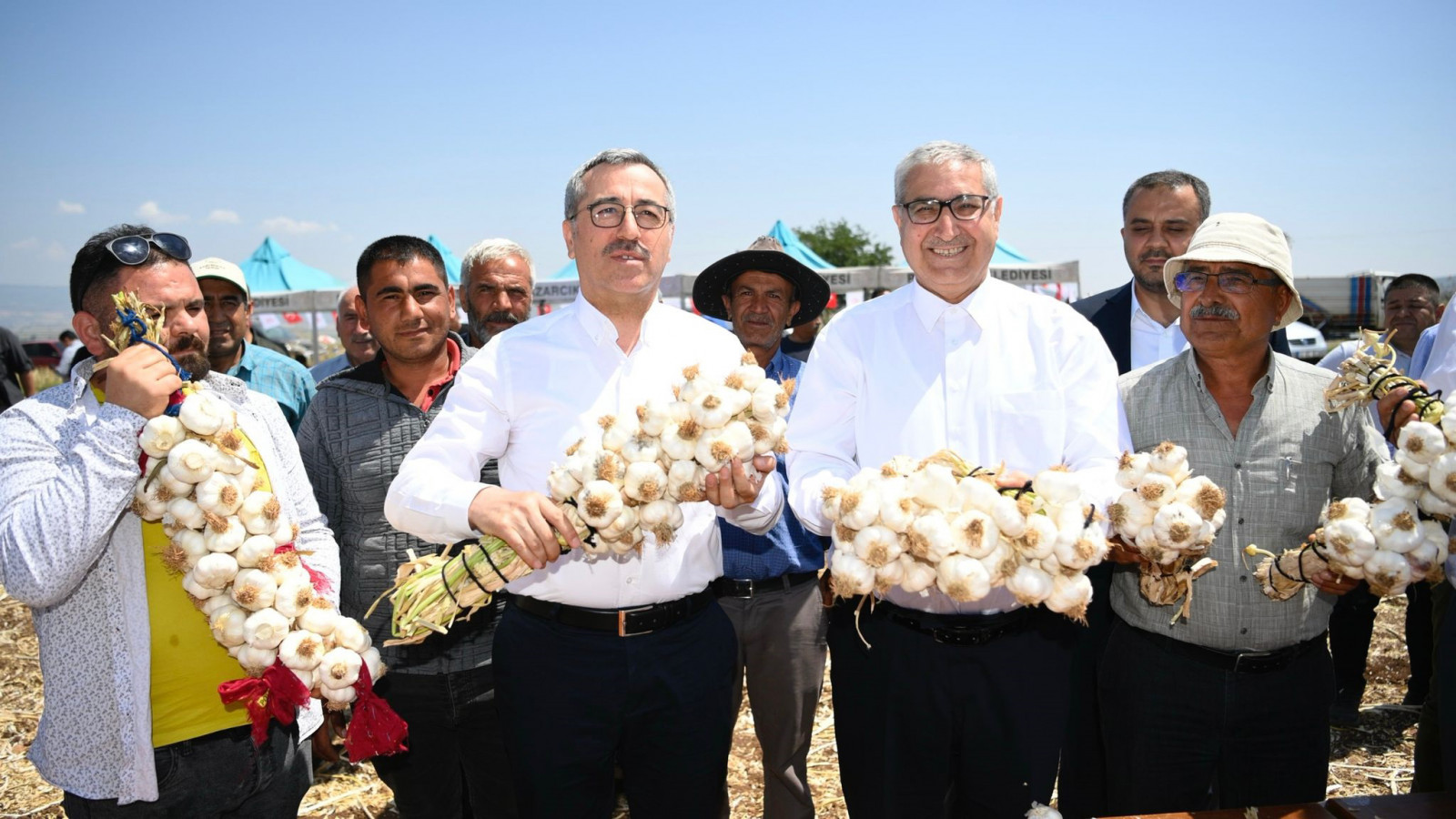 Kahramanmaraş Büyükşehir Belediye Başkanı Hayrettin Güngör, ‘Pazarcık Beşçeşme Sarımsak Festivali’ kapsamında düzenlenen hasat etkinliğine katıldı. Pazarcık Belediye Başkanı İbrahim Yılmazcan ve Büyükşehir Belediyesi Meclis Üyesi Hanifi Toptaş’ın da yer aldığı etkinlikte Başkan Hayrettin Güngör, sarımsak üreticileri ve işçilerle bir araya geldi. Etkinlikte yaptığı konuşmada Kahramanmaraş’ın sarımsak üretiminde çok önemli bir yere sahip olduğunu vurgulayan Başkan Hayrettin Güngör, “Dünyada tarım ürünü çeşitliliği açısından Kahramanmaraş çok ciddi bir potansiyele sahip. Kahraman şehrimiz coğrafyası, iklimi, birçok coğrafi bölgede toprağının olmasıyla çok fazla tarım ürününe ev sahipliği yapıyor. Fındık, sarımsak, pamuk, narenciye, kiraz, ceviz, elma gibi birbirinden farklı ürünlerin bir arada yetiştiği coğrafya sayısı çok azdır. Kahramanmaraş’ımız sarımsak üretiminde de Türkiye’de çok önemli bir yere sahip. Sarımsak üretiminde Türkiye’de üçüncü sırada yer alıyoruz. Geçtiğimiz yıl şehrimizde toplamda 50 bin tonun üzerinde sarımsak üretildi. İnşallah bu yıl daha fazla üretim olacağını ümit ediyorum” dedi.