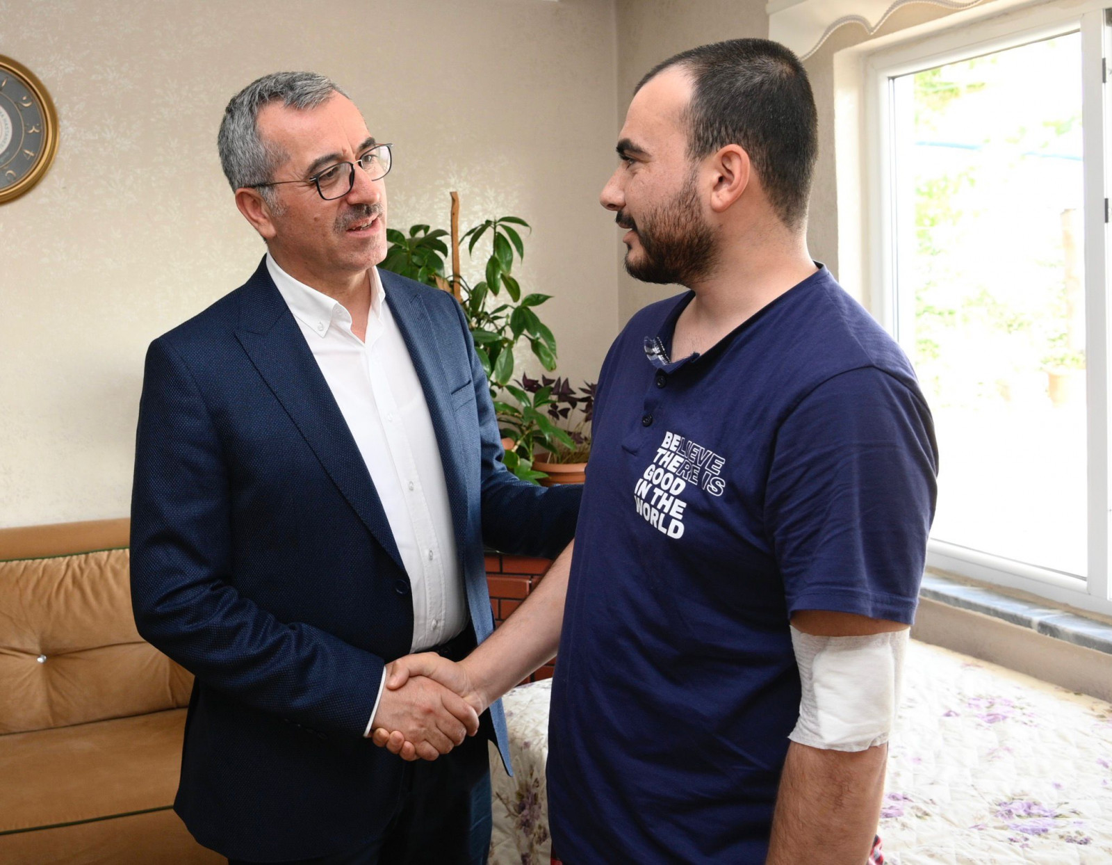 Irak’ın kuzeyindeki Pençe – Kilit Operasyonu’nda yaralanan P. Uzm. Çvş. Burak Çam’ı hanesinde ziyaret eden Başkan Güngör, “Burak kardeşimize ve kıymetli ailesine geçmiş olsun dileklerimizi ilettik. Çok şükür sıhhati gayet iyi. Burak kardeşimize ve nezdinde tüm gazilerimize şifa diliyorum. Rabbim Mehmetçiğimizi muhafaza eylesin” dedi.
