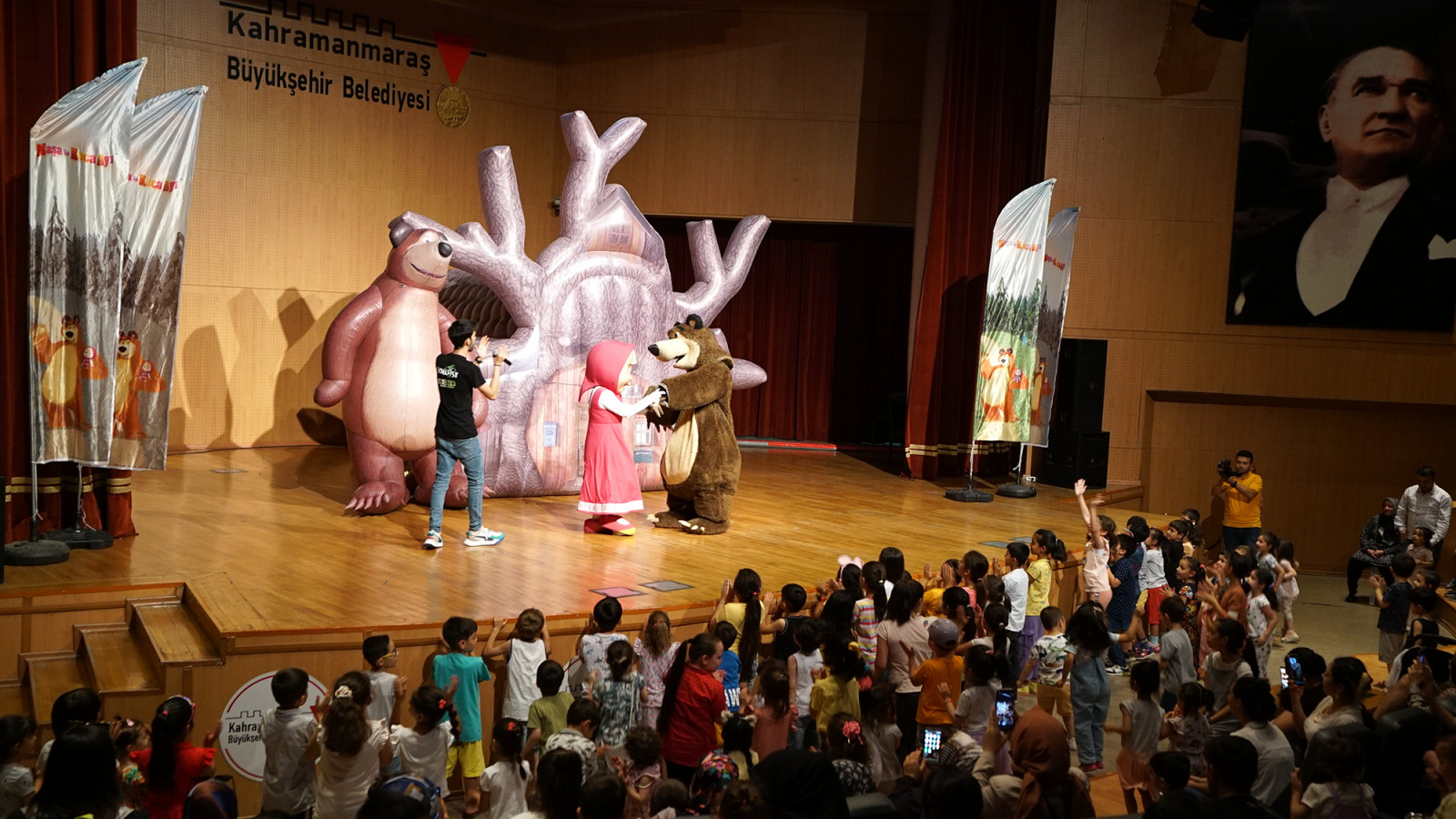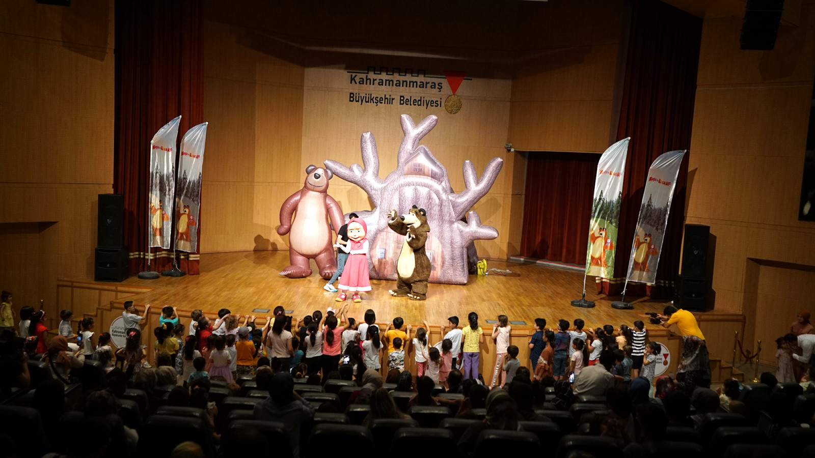 Kahramanmaraş Büyükşehir Belediyesi, kültür sanat etkinliklerini Kahramanmaraşlılarla buluşturmaya devam ediyor. Şehirde farklı yaş gruplarına yönelik etkinlikler düzenleyen Büyükşehir Belediyesi, çocuklar tarafından sevilerek izlenen çizgi film karakterlerinden ‘Maşa ile Koca Ayı’ ve ‘Ege ile Gaga’ müzikal çocuk tiyatrolarını miniklerle buluşturdu. Mehmet Akif Ersoy Kültür Merkezi’nde gerçekleştirilen etkinliklere çocuklar yoğun ilgi gösterdi. Renkli anlara sahne olan etkinliklerde çocuklar doyasıya eğlendi. Miniklere unutulmaz bir gün yaşatan ‘Maşa ile Koca Ayı’ ve ‘Ege ile Gaga’ müzikalleri bir yandan eğlendirirken bir yandan da öğretti. Çocukların adeta akın ettiği etkinlikte ebeveynler, gerçekleştirilen program dolayısıyla Büyükşehir Belediyesi’ne teşekkür etti.