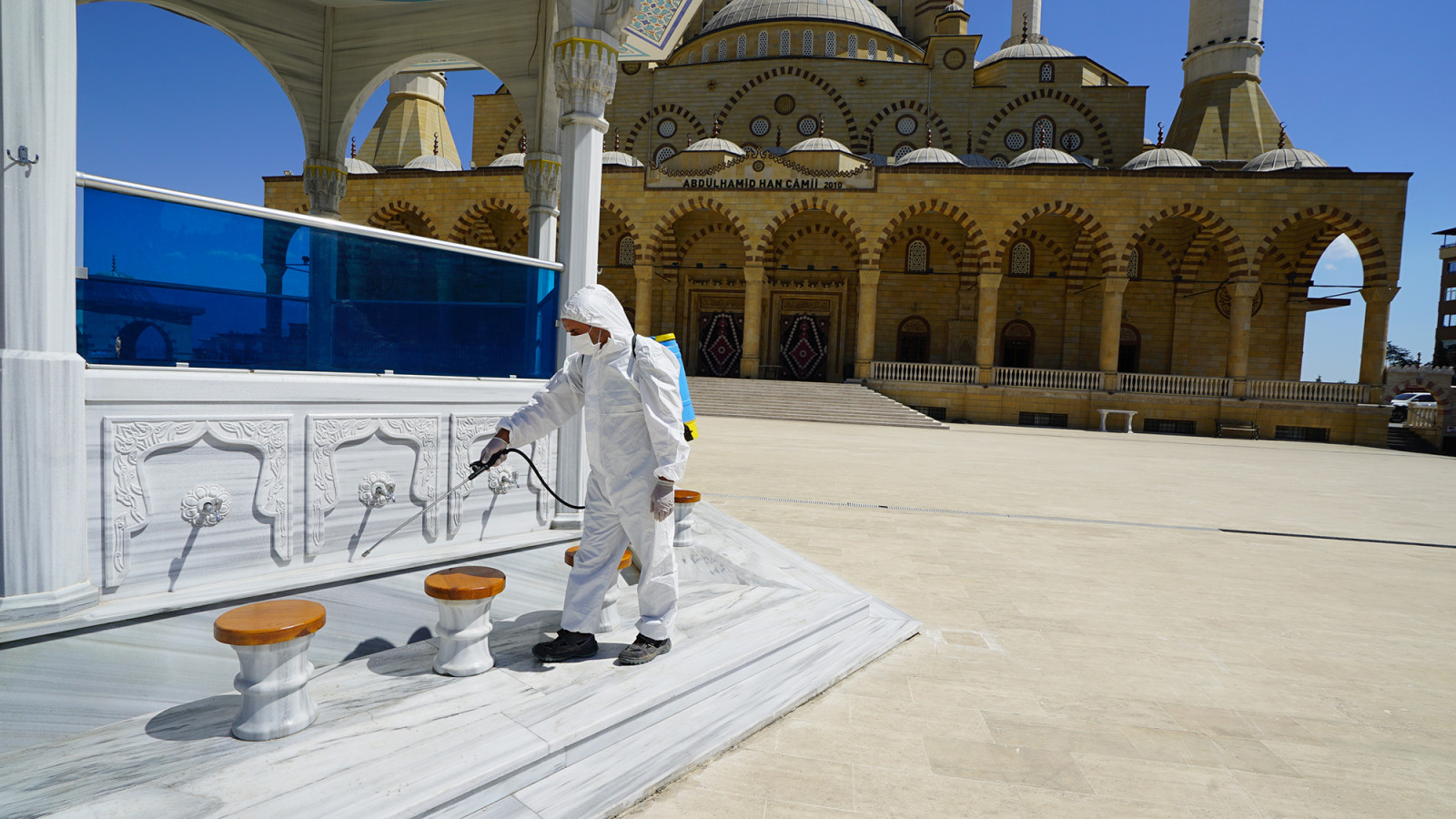 Kahramanmaraş Büyükşehir Belediyesi, şehir genelinde bayram hazırlıklarını sürdürüyor. Çevre Koruma ve Kontrol Dairesi Başkanlığı koordinesindeki ekipler, şehrin muhtelif yerlerinde ortak kullanım alanlarında ve muhtemel yoğunluğun oluşabileceği mekânlarda temizlik ve dezenfeksiyon uygulamaları gerçekleştirdi. Vatandaşların bayram namazını daha hijyenik bir ortamda eda edebilmeleri için de onlarca camii dezenfekte edildi. Ayrıca ilaçlama araçları ve makineleriyle gerçekleştirilen dezenfeksiyon ve temizlik uygulamalarıyla toplu kullanım alanlarında da hijyen sağlandı.