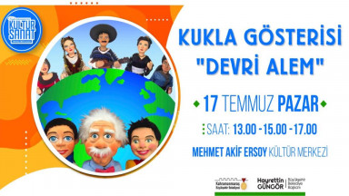 Büyükşehir Belediyesi, 17 Temmuz Pazar günü ‘Devri Alem’ adlı kukla gösterisini çocuklarla buluşturacak. Mehmet Akif Ersoy Kültür Merkezi’nde gerçekleştirilecek ücretsiz etkinliğe tüm çocuklar davet edildi.