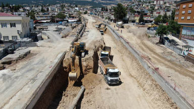 Kahramanmaraş Büyükşehir Belediyesi, hayata geçirdiği yatırımlarla şehrin katma değerini artırmaya devam ediyor. Şehrin doğusu ile batısını kesintisiz birbirine bağlayan aynı zamanda Yedikuyular Kayak Merkezi’ne ulaşım sağlayan Tevfik Kadıoğlu Köprülü Kavşak projesinde çalışmalar hız kesmeden devam ediyor. 10 Haziran tarihinde temeli atılan ve tamamlanması için 90 günlük süre belirlenen proje kapsamında bölgeye 60 metre uzunluğunda çift şeritli tünel ve 500 metre uzunluğunda bağlantı yollarını kazandırılacak. Fore kazık ve tünel kenar ayaklarının imalatının tamamlandığı projede, anayol ve tünel kazıları da devam ediyor. Proje kapsamında servis yollarının yükseklikleri de ayarlanıyor. Toplamda 55 Milyon TL’lik yatırımla hayata geçirilen projenin 48 gün içerisinde tamamlanarak Kahramanmaraşlıların hizmetine sunulması hedefleniyor.