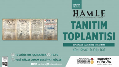 Kültür, sanat ve edebiyat alanında çalışmalarını aralıksız sürdüren Kahramanmaraş Büyükşehir Belediyesi, 1952 yılında Kahramanmaraş’ta yayın hayatına başlayan ve toplamda 22 sayısı yayımlanan Hamle Dergisi’nin tüm sayıları bir araya getirerek oluşturulan ‘Hamle Dergisi Tıpkıbasımı’nı şehir kitaplığına kazandırdı. Bu kapsamda, 10 Ağustos Çarşamba günü Yedi Güzel Adam Edebiyat Müzesi’nde Hamle Dergisi Tıpkıbasımı’nın tanıtım toplantısı gerçekleştirilecek. Saat 18.00’de başlayacak programda Yazar Duran Boz, kitapseverlerle bir araya gelecek. Büyükşehir Belediyesi’nden yapılan açıklamada, kitap tanıtım toplantısına tüm Kahramanmaraşlıların davetli olduğu belirtildi.
