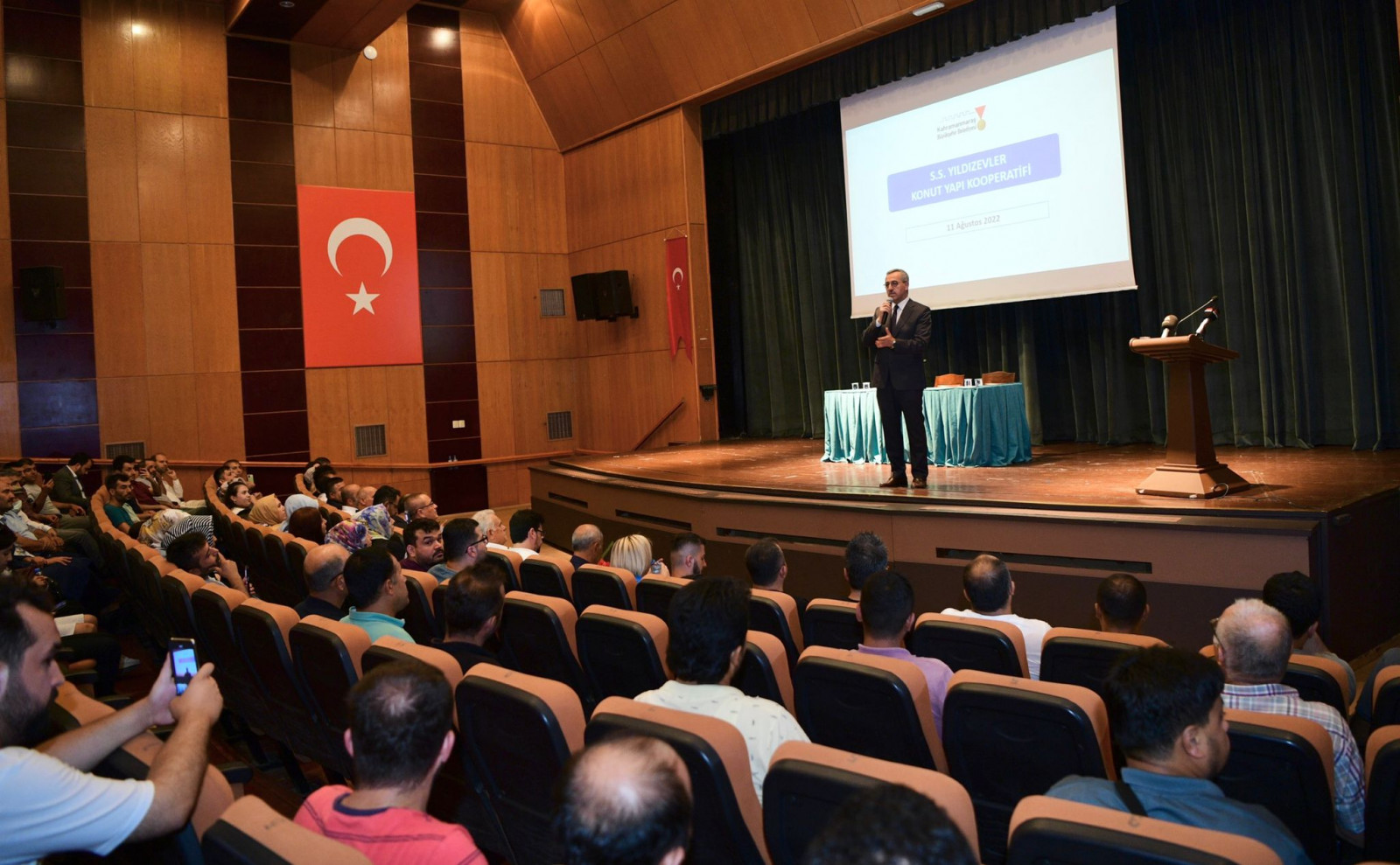 Kahramanmaraş Büyükşehir Belediye Başkanı Hayrettin Güngör, Yıldızevler Konut Yapı Kooperatifi üyeleriyle bir araya gelerek Yıldızevler Konutları’nda devam eden süreçle ilgili bilgiler aktardı. Necip Fazıl Kısakürek Kültür Merkezi’nde gerçekleştirilen programda AK Parti İl Başkan Yardımcısı Hakan Dereli, Büyükşehir Belediyesi Meclis Üyeleri ve kooperatif yönetim kurulu üyeleri de yer aldı. Başkan Güngör programda, kooperatif üyelerinden gelen soruları da tek tek yanıtladı.
