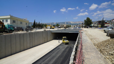 Kahramanmaraş Büyükşehir Belediyesi tarafından 55 Milyon TL’lik yatırımla hayata geçirilen Tevfik Kadıoğlu Köprülü Kavşak projesinde geri sayım başladı. Süratle devam eden çalışmalarda, kiriş ve panellerin montajı tamamlanırken; tünel bölümünde betonarme, kaldırımlarda ise parke bordür uygulamalarına başlandı. Şehrin doğusu ve batısını kesintisiz birbirine bağlayan aynı zamanda Yedikuyular Kayak Merkezi’ne doğrudan ulaşım sağlayan projede ekipler, servis yollarında tesviye ve reglaj çalışmalarını sürdürüyor. Ana yolda ise sıcak asfalt uygulaması tüm hızıyla devam ediyor. 10 Haziran’da temeli atılan ve tamamlanması için 90 günlük süre belirlenen projenin, kalan 24 günde bitirilerek hizmete alınması hedefleniyor.