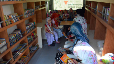 Kahramanmaraş Büyükşehir Belediyesi’nin örnek hizmeti Gezici Kütüphane, yüzleri güldürmeye devam ediyor. Kitaba ulaşmakta zorluk yaşayan öğrencilerle buluşan Gezici Kütüphane, bu kez Malik Ejder Mahallesi Demirkollar Camii’nde eğitim gören Kur’an Kursu öğrencileriyle bir araya geldi. Gönüllülerin de katılımıyla gerçekleştirilen buluşmada, 6 – 15 yaş aralığındaki 300’e yakın öğrenciyle birbirinden renkli etkinlikler düzenlendi, oyunlar oynandı. Katılımcılara çeşitli ikramlarda da bulunulan etkinlikte çocuklar kitaplarla buluşurken Büyükşehir Belediyesi’ne teşekkürlerini ifade etti.