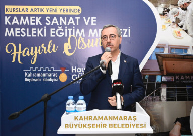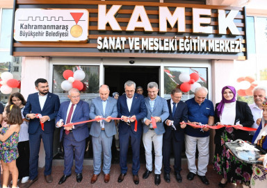 Kahramanmaraş Büyükşehir Belediyesi Meslek Edindirme ve Sanat Eğitimi Kursları’nın (KAMEK) yeni hizmet noktası açılış programı gerçekleştirildi. Mehmet Akif Ersoy Kültür Merkezi’nin yanındaki eski belediye binasının yenilenmesiyle oluşturulan KAMEK Sanat ve Mesleki Eğitim Merkezi açılışına Büyükşehir Belediye Başkanı Hayrettin Güngör’ün yanı sıra Vali Ömer Faruk Coşkun, MHP Kahramanmaraş Milletvekili Sefer Aycan, Onikişubat Belediye Başkanı Hanefi Mahçiçek, AK Parti Onikişubat İlçe Başkanı Mücahit Kara, protokol üyeleri ve vatandaşlar katıldı. Kahramanmaraşlı usta yazar Vehbi Vakkasoğlu’nun da yer aldığı açılış programı, kurdele kesim töreni ve protokol konuşmalarının ardından atölye ziyaretleriyle noktalandı.