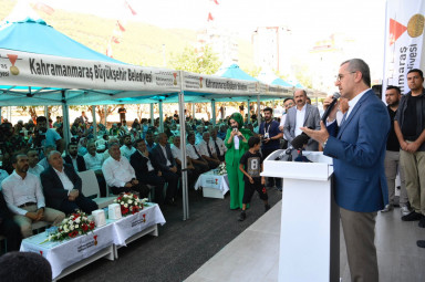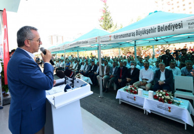Kahramanmaraş Büyükşehir Belediye Başkanı Hayrettin Güngör, Cemile Akkoyun Millet Konağı’nın açılış programına katıldı. Büyükşehir Belediyesi’nin katkılarıyla Akkoyun ailesi tarafından Onikişubat ilçesi Üngüt Mahallesi’ne kazandırılan Cemile Akkoyun Millet Konağı’nın açılış programında Başkan Hayrettin Güngör’ün yanı sıra Vali Ömer Faruk Coşkun, AK Parti Kahramanmaraş Milletvekilleri Ahmet Özdemir ve Cihat Sezal, Garnizon Komutanı Emin Mehmet Terzioğlu, Dulkadiroğlu Belediye Başkanı Necati Okay, Onikişubat Kaymakamı Serkan Keçeli, önceki dönem Büyükşehir Belediye Başkanı Fatih Mehmet Erkoç, siyasi parti temsilcileri, kamu kurum ve kuruluş temsilcileri, muhtarlar ile çok sayıda vatandaş da yer aldı.