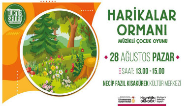 Büyükşehir Belediyesi, çocuk etkinlikleri kapsamında 28 Ağustos Pazar günü Necip Fazıl Kısakürek Kültür Merkezi’nde “Harikalar Ormanı” temalı gösteriyi miniklerle buluşturacak.