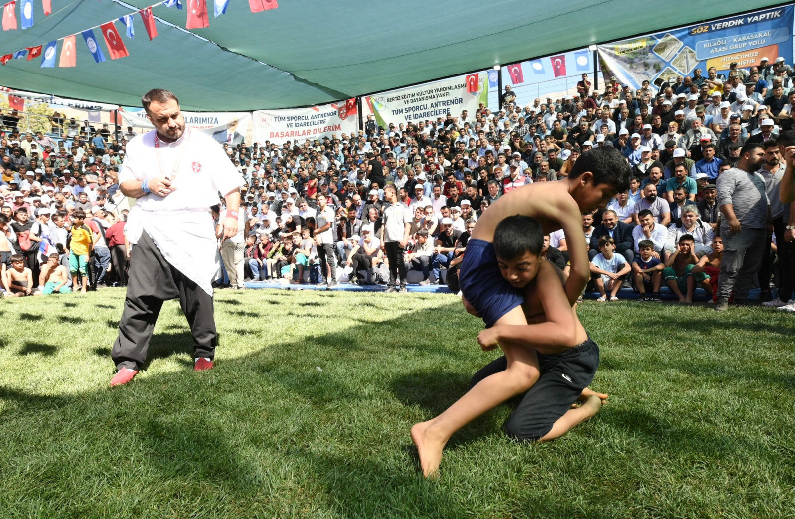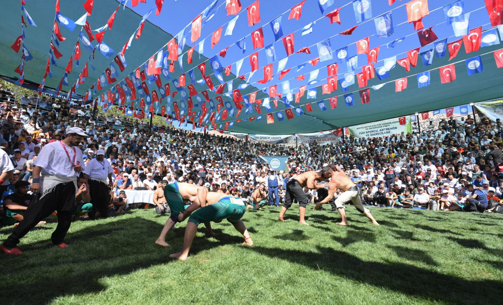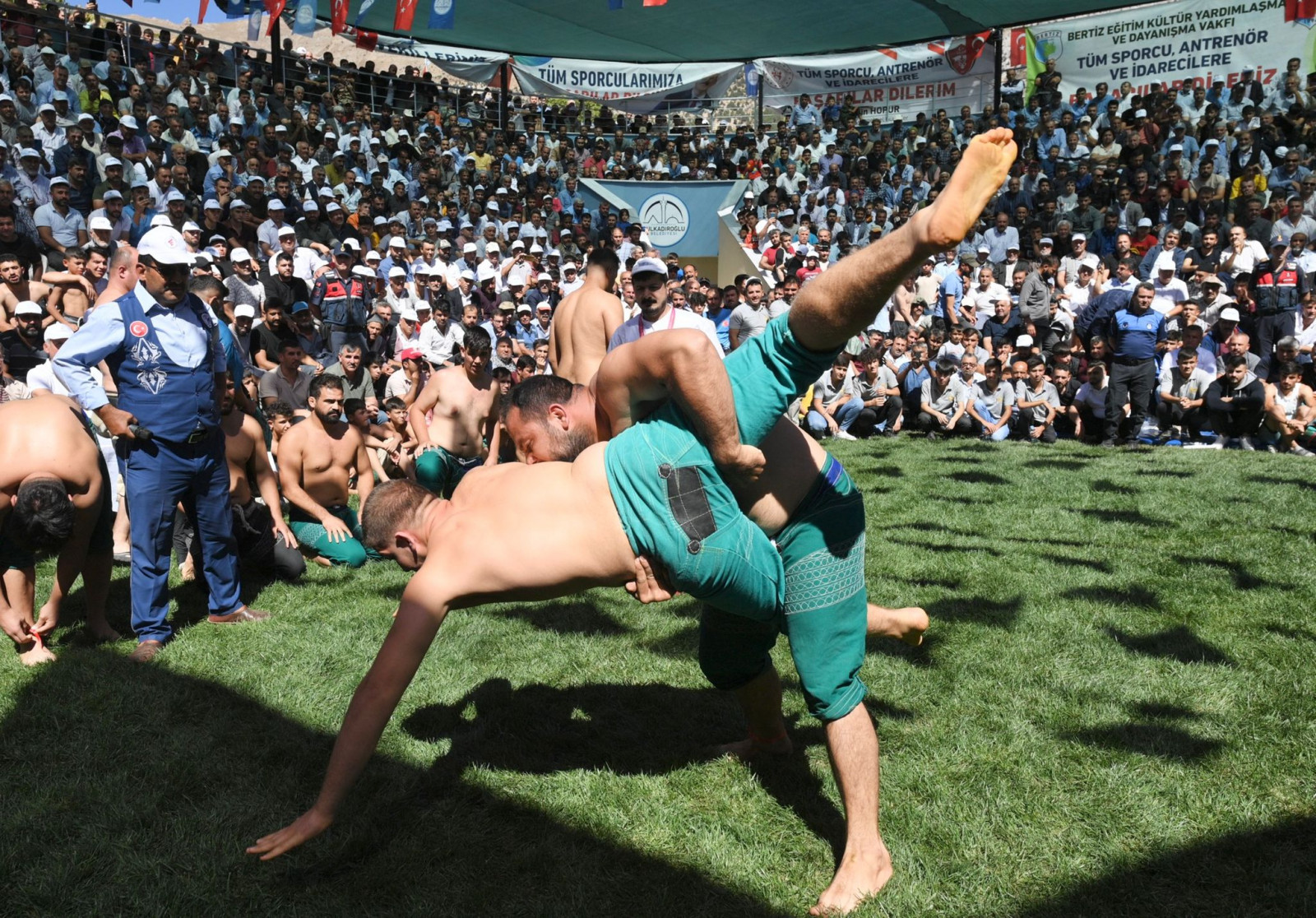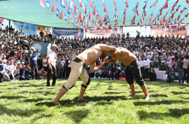 Kahramanmaraş Büyükşehir Belediye Başkanı Hayrettin Güngör, Türkiye Geleneksel Güreşler Federasyonu ve Dulkadiroğlu Belediyesi iş birliğiyle düzenlenen 21. Geleneksel Bertiz Boyalı Güreş Festivali’ne katıldı. Bertiz Boyalı Güreş Sahası’nda gerçekleştirilen etkinliği takip edenler arasında Vali Ömer Faruk Coşkun, TBMM İçişleri Komisyon Başkanı Celalettin Güvenç, Kahramanmaraş Milletvekilleri Habibe Öçal, Cihat Sezal ve Sefer Aycan, AK Parti Genel Merkez Yerel Yönetimler Başkan Yardımcısı Veli Böke, AK Parti İl Başkanı Fırat Görgel, Dulkadiroğlu Belediye Başkanı Necati Okay, Türkiye Geleneksel Güreşler Federasyonu Başkan Vekili Şahin Hopur, teşkilat mensupları ve çok sayıda sporsever de yer aldı. Festivalde toplamda 683 pehlivan kürsüye çıkabilmek için kıyasıya mücadele etti.