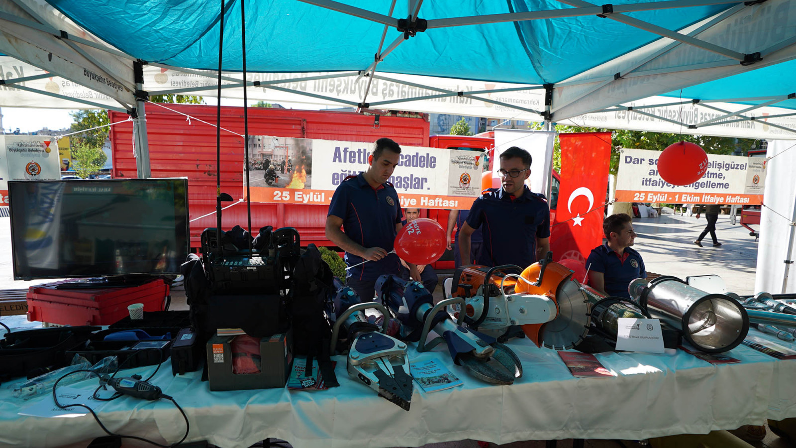 İtfaiye Haftası dolayısıyla Büyükşehir Belediyesi İtfaiyesi tarafından, farkındalık oluşturmak ve vatandaşları bilgilendirmek için Demokrasi Meydanı’nda stant kuruldu. Kurulan stantlarda ekipler tarafından vatandaşlara itfaiyenin görevleri, ekipmanlar, yangın ve doğal afetlere müdahale ve acil müdahale gerektiren durumlarda yapılması gerekenlere ilişkin bilgiler aktarılıyor. İtfaiye personelleri, 27 Eylül Salı günü akşam saatlerine kadar Demokrasi Meydanı’nda vatandaşlarla bir araya gelerek bilgiler aktarmaya devam edecek.