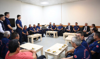 İtfaiye Haftası kapsamında İtfaiye Dairesi Başkanlığı’nı ziyaret ederek personellerle bir araya gelen Başkan Güngör, “Özverili ve fedakâr çalışmaları dolayısıyla her zaman gurur duyduğumuz İtfaiye personellerimizin İtfaiye Haftası’nı kutluyorum. Şehrimizde ve ülkemizin dört bir yanında meydana gelen yangın, doğal afet ve acil müdahale gerektiren durumlarda 7/24 görevlerinin başındalar. Rabbim yardımcıları olsun” dedi.