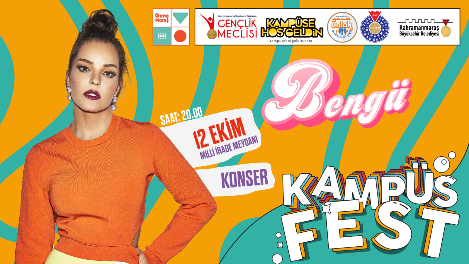 Büyükşehir Belediyesi’nin katkılarıyla düzenlenen Kampüs Fest; 12 Ekim Çarşamba günü (yarın) coşku dolu 2 etkinlikle start alacak. KSÜ’de saat 14.00’da ünlülerle gerçekleştirilecek ilk etkinliğin ardından, Bengü unutulmaz şarkılarını Milli İrade Meydanı’nda saat 20.00’da Kahramanmaraşlı hayranları için seslendirecek.
