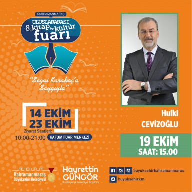 Büyükşehir Belediyesi’nin düzenlediği Kahramanmaraş 8. Uluslararası Kitap ve Kültür Fuarı’nda 19 Ekim Çarşamba günü Mehmet Işık, Hilal Çorbacıoğlu, KSÜ Rektörü Prof. Dr. Alptekin Yasım, Hulki Cevizoğlu ve Ali Ural, edebiyatseverlerle bir araya gelecek.