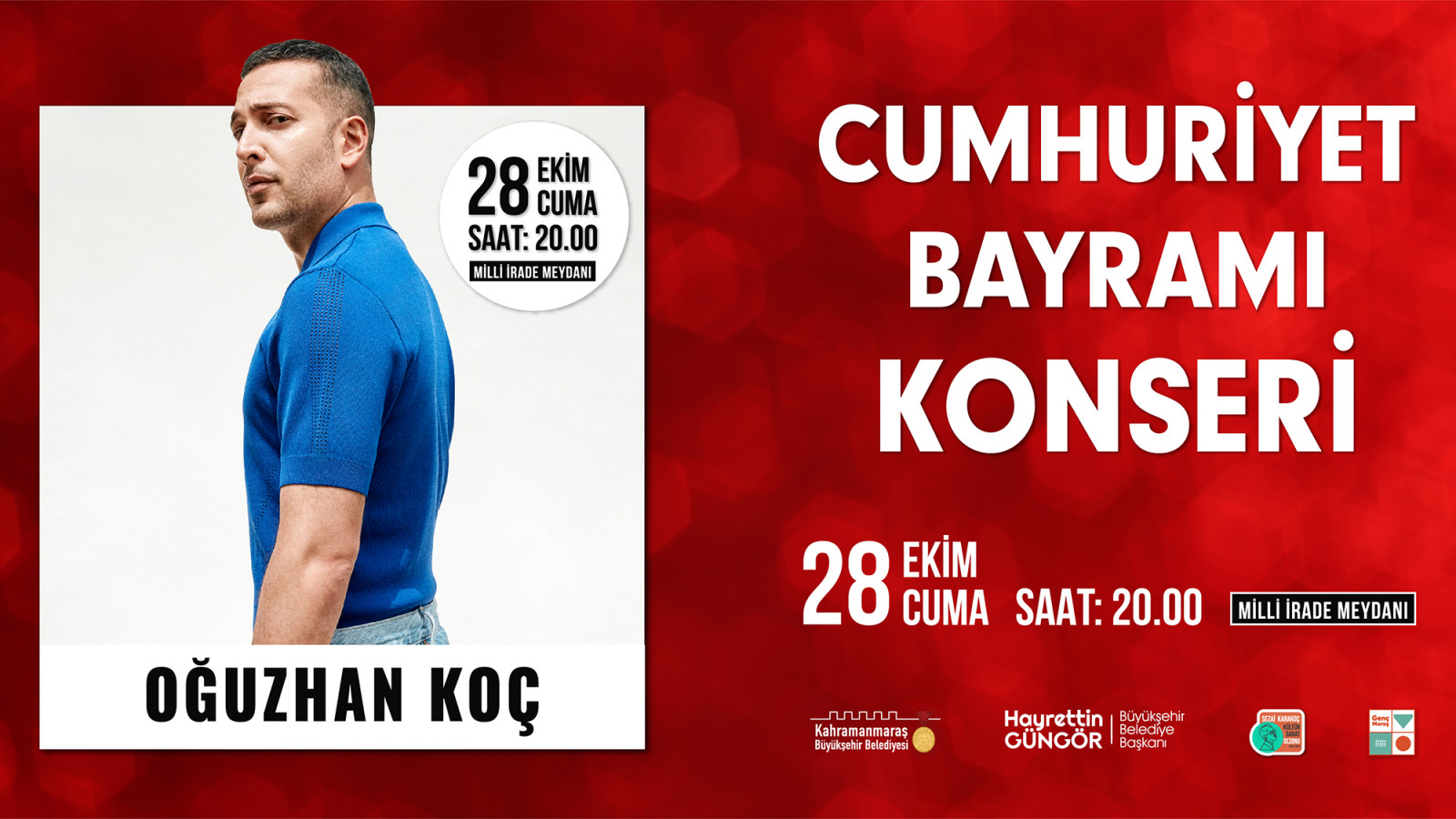 Büyükşehir Belediyesi, Cumhuriyet Bayramı etkinlikleri kapsamında Türk pop müziğinin sevilen ismi Oğuzhan Koç’u Kahramanmaraşlılarla buluşturacak. 28 Ekim Cuma günü Milli İrade Meydanı’nda gerçekleştirilecek konser saat 20.00’da başlayacak.