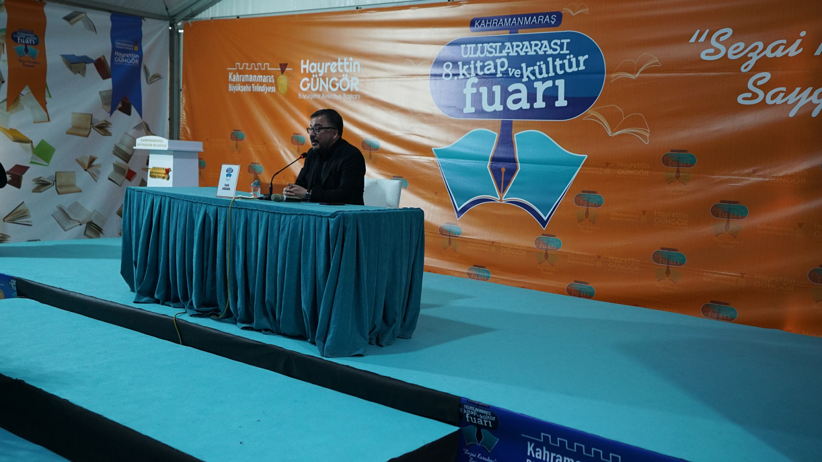 Edebiyatseverlerin yoğun ilgi gösterdiği fuarın son gününde Oyuncu – Yazar Murat Tavlı, söyleşi etkinliğinde okurlarla buluştu. Anadolu’nun en büyük kitap fuarında kitapseverlerle bir araya gelen Tavlı; yazma serüveni ve ilham aldığı konular hakkında konuştu. Etkinlik sonrası açıklamalarda bulunan Tavlı, “Kahramanmaraş’ta olmaktan dolayı çok mutluyum. Evimizden kilometrelerce uzakta okurlarımızla bir araya geldik. Çok önemli bir şehirdeyiz. Burası çok büyük şairlerin, yazarların harmanlandığı bir şehir. Bu vizyoner organizasyonda emeği geçen başta Büyükşehir Belediye Başkanımız olmak üzere herkese teşekkür ediyorum” dedi.