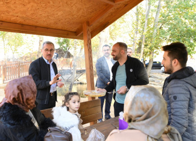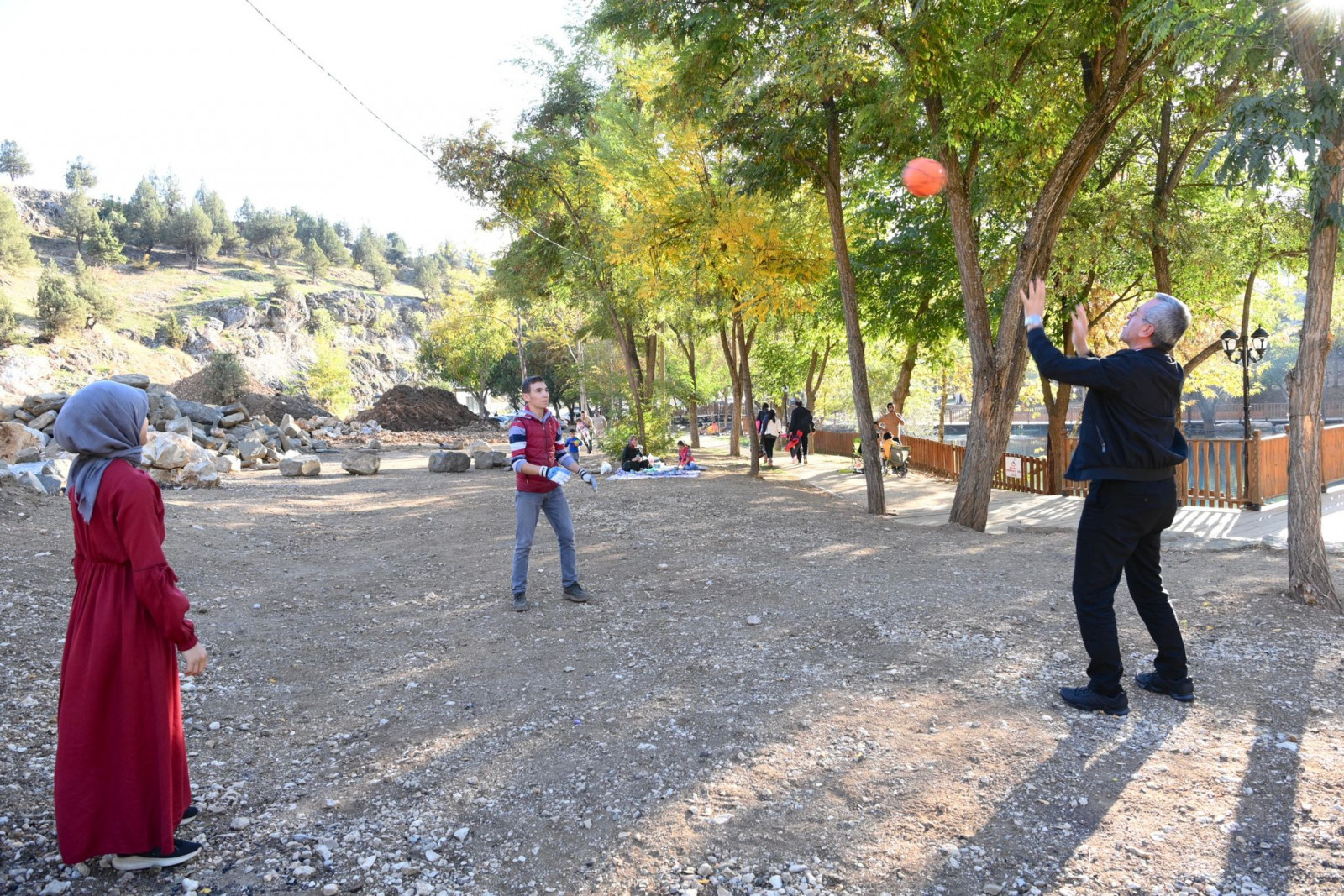 Yeşilgöz Mesire Alanı’nda gerçekleştirilen ve devam eden çalışmalara ilişkin bilgiler aktaran Başkan Hayrettin Güngör, “Yeşilgöz, şehrimizin en büyük doğal miras alanlarından bir tanesi. Buranın turizm potansiyelini ve katma değerini artırmak için çeşitli çalışmalar gerçekleştiriyoruz. Çevre düzenleme çalışmalarımızı tamamladık. İlk etapta bölgeye yeni yürüyüş yolları, ahşap köprü, çocuk oyun alanı, kent mobilyaları, büfe ve mangal alanları kazandırdık. Bölgeye ulaşım sağlayan 2,5 kilometre uzunluğundaki arteri de yeniledik. Yeni amfi tiyatro, restoran, otopark alanı ve mescit yapılarını kapsayan ikinci etap çalışmalarımız da başladı. İnşallah ikinci etap çalışmalarımızı da tamamlayarak Yeşilgöz’ün turizm potansiyelini daha da artıracağız” cümlelerini kullandı.