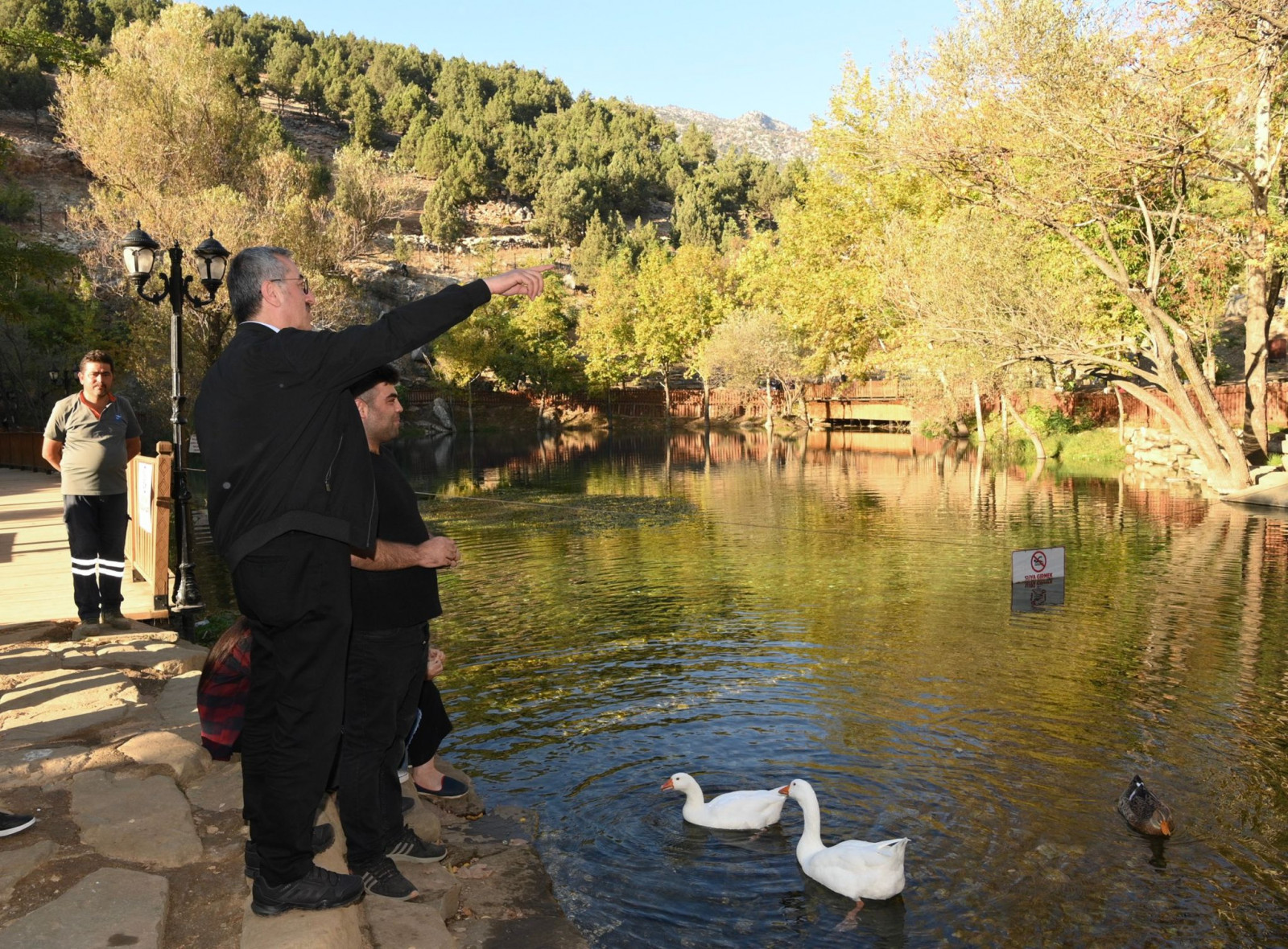 Yeşilgöz’de incelemelerde bulunan Başkan Güngör, “Yeşilgöz’ün turizm potansiyelini ve katma değerini artırmak için çeşitli çalışmalar gerçekleştiriyoruz. İlk etapta bölgeye yeni yürüyüş yolları, ahşap köprü, çocuk oyun alanı, kent mobilyaları, büfe ve mangal alanları kazandırdık. Yeni amfi tiyatro, restoran, otopark alanı ve mescit yapılarını kapsayan ikinci etap çalışmalarımız da başladı” dedi.
